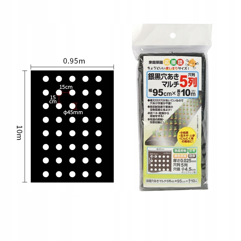 Agrotkanina z Otworami Czarna FOLIA OTWORY SADZONKI na chwasty 10m