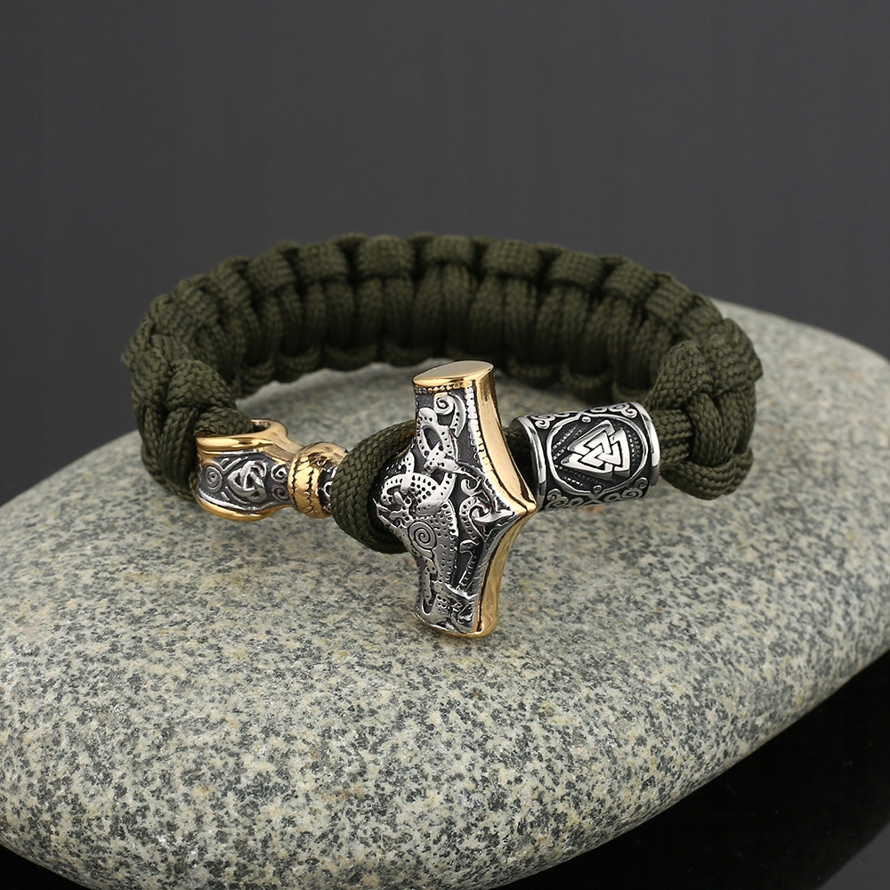 Bransoleta wikingów młot thora nordycka zieleń 447