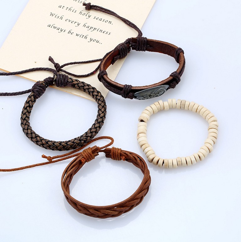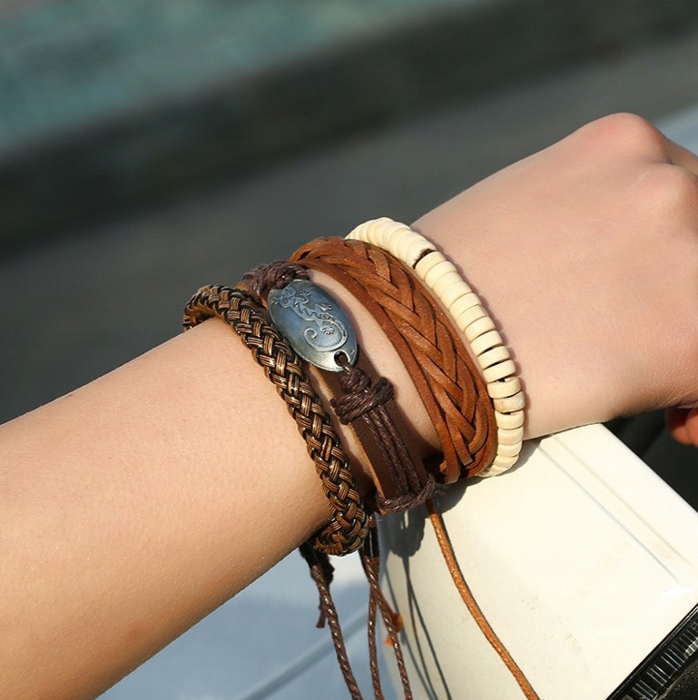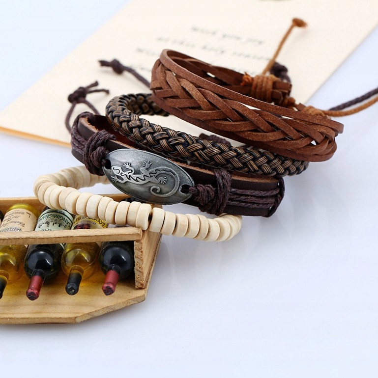 Zestaw bransoletek męskich z ekoskóry