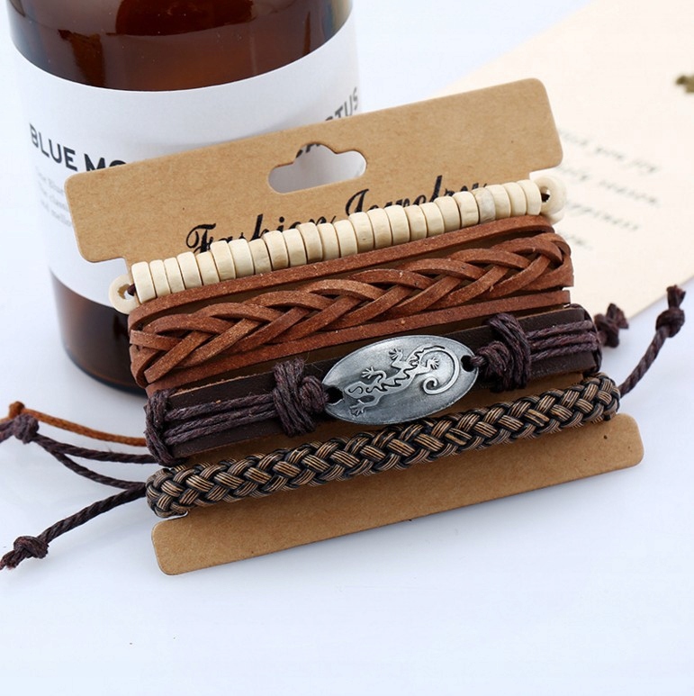 Bransoletka męska skórzana zestaw komplet 301 - zdjęcie 1