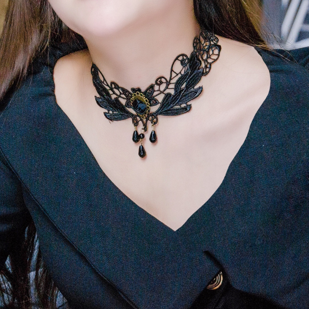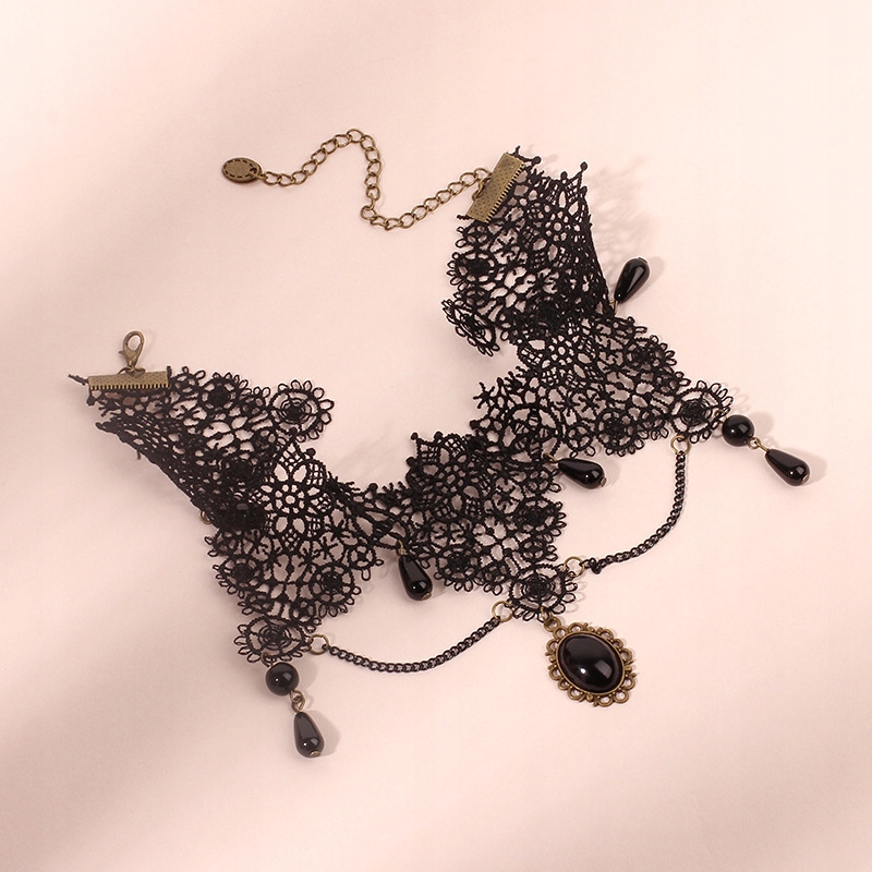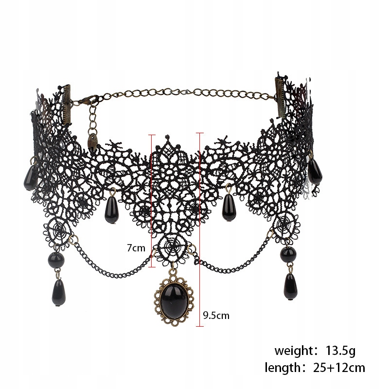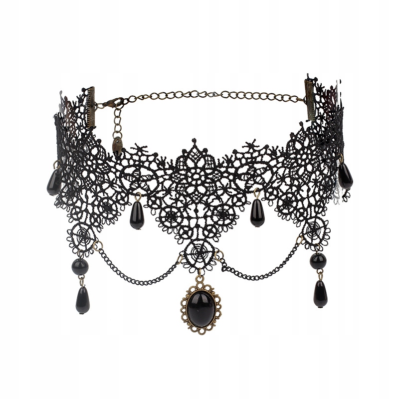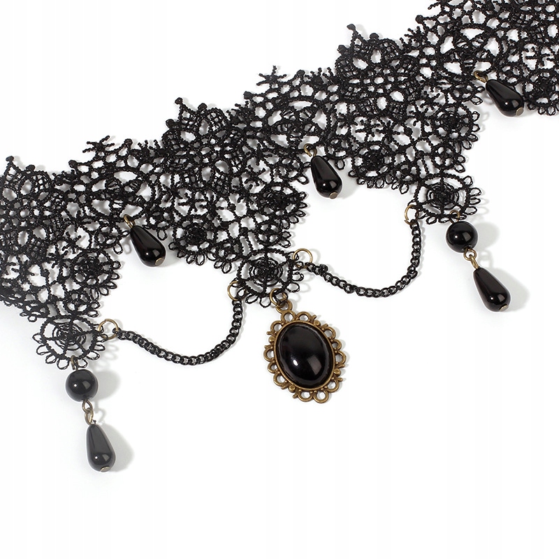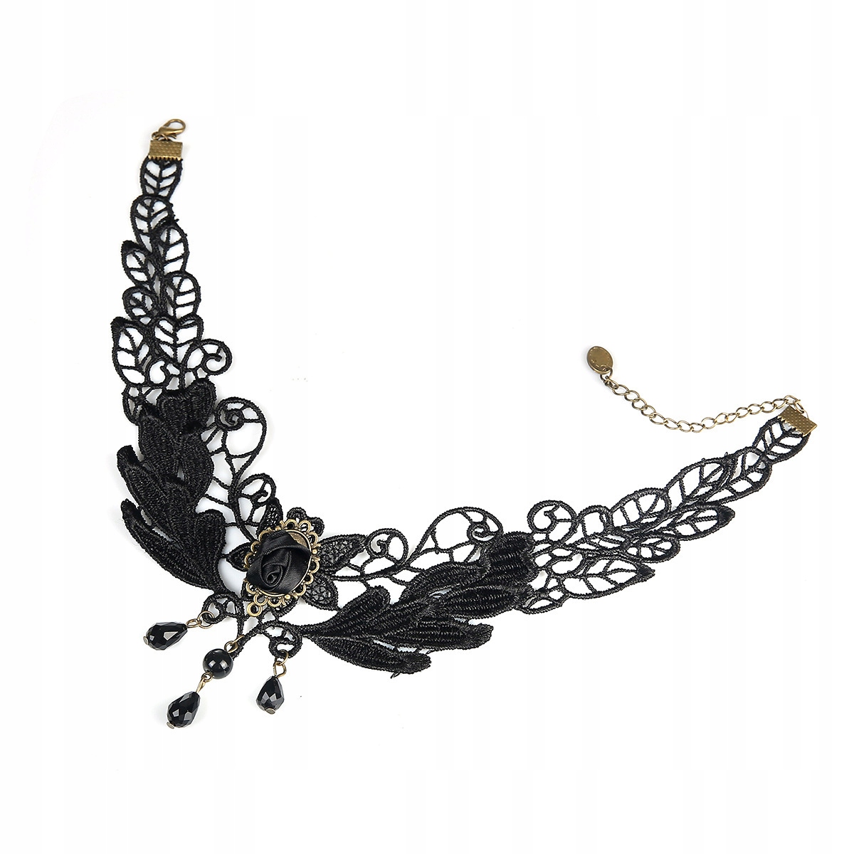 Choker koronkowy haft czarny naszyjnik gothic ch05