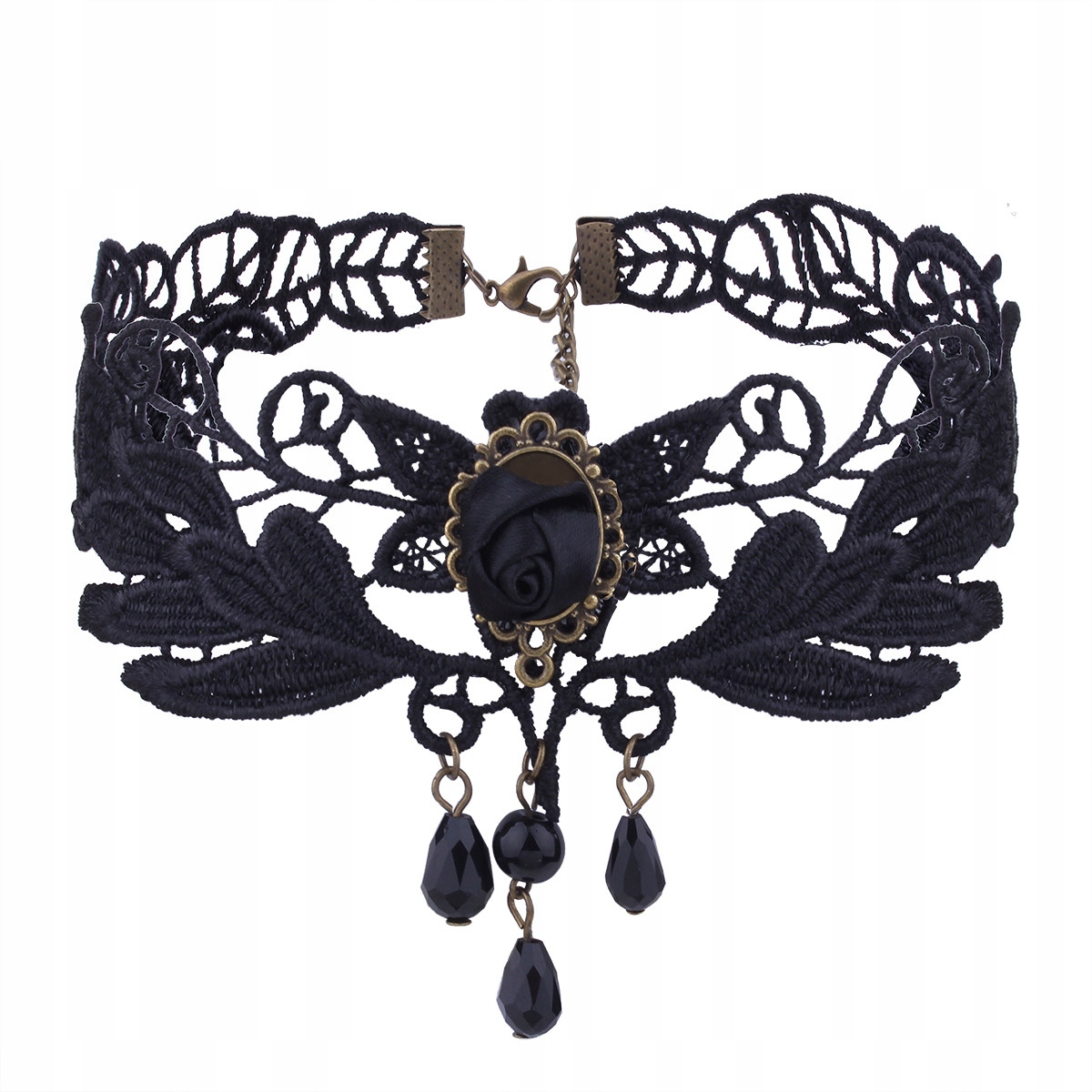 Choker koronkowy haft czarny naszyjnik gothic ch07