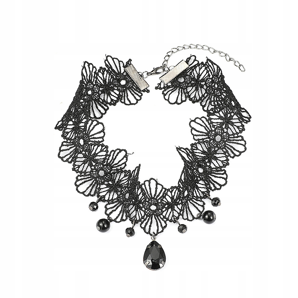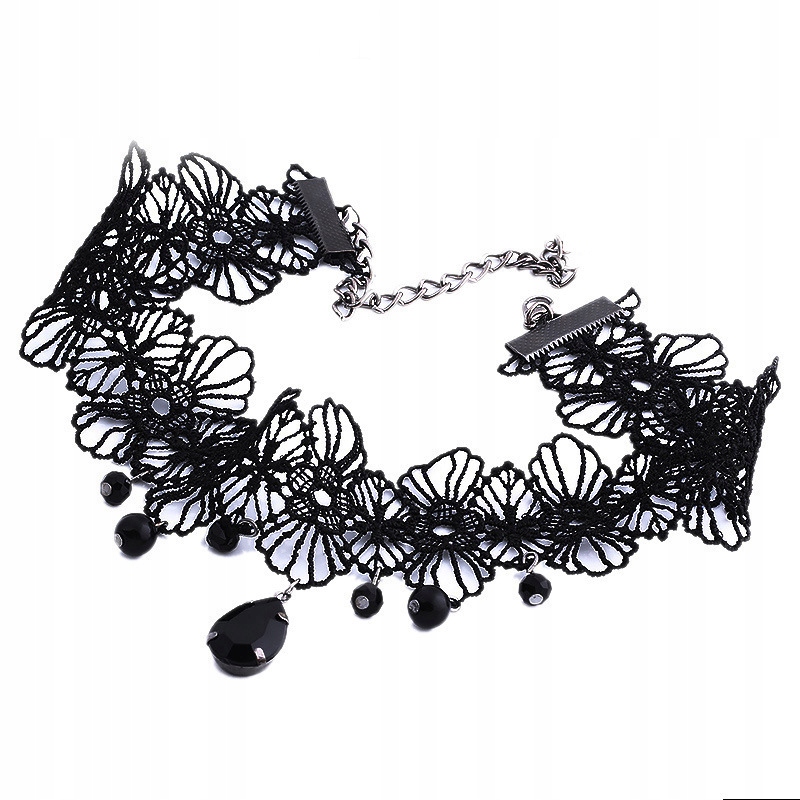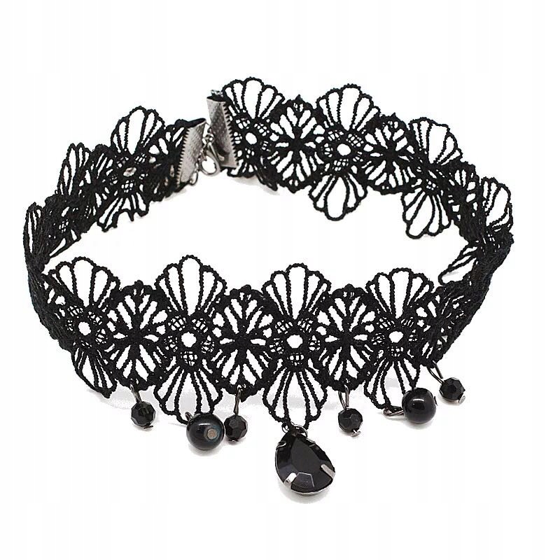 CHOKER NA SZYJE KORONKOWY GOTYCKI Haft Czarny NASZYJNIK Gothic CH11
