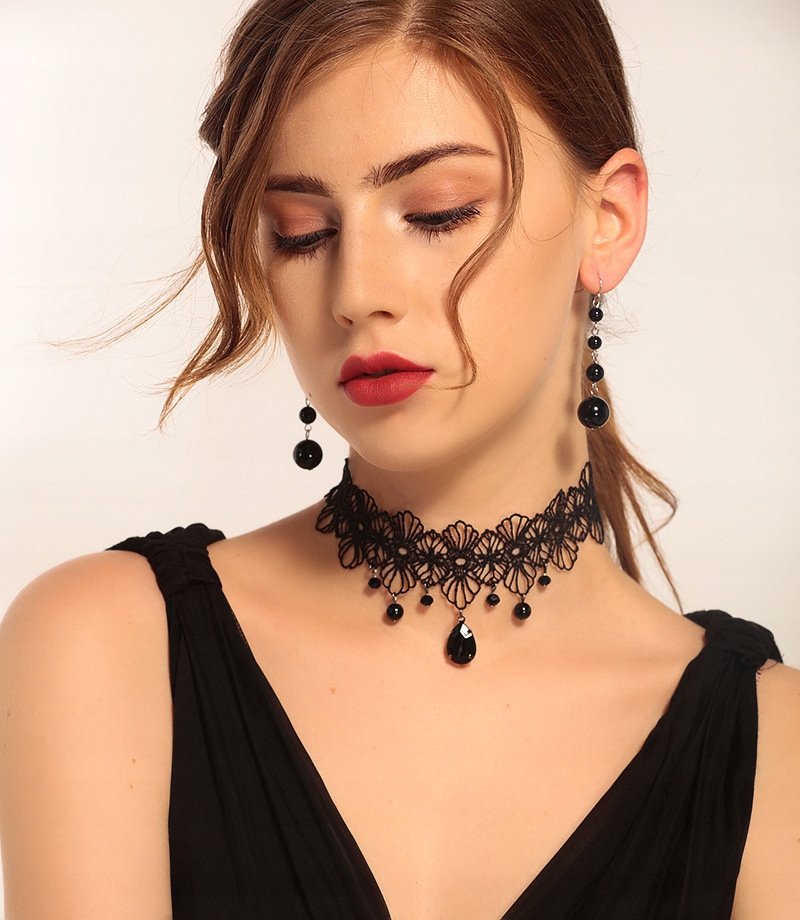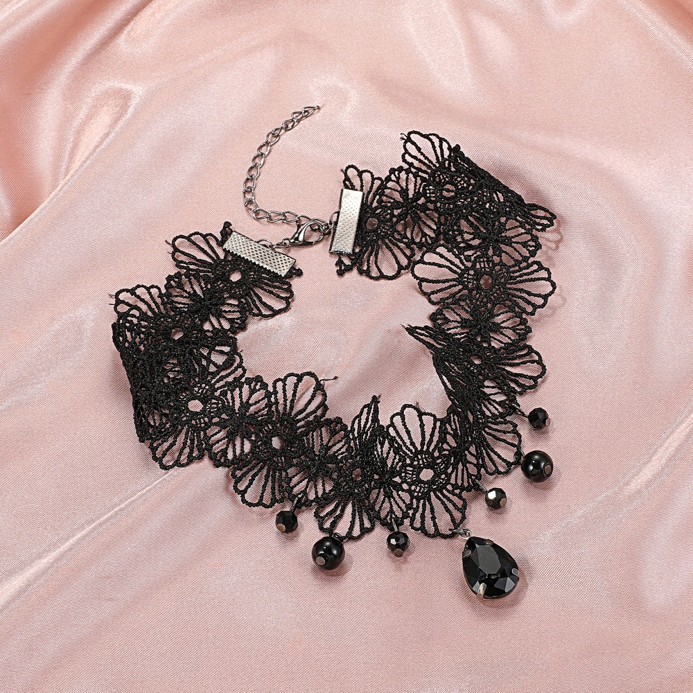 Choker na szyje koronkowy gotycki haft czarny naszyjnik gothic ch11