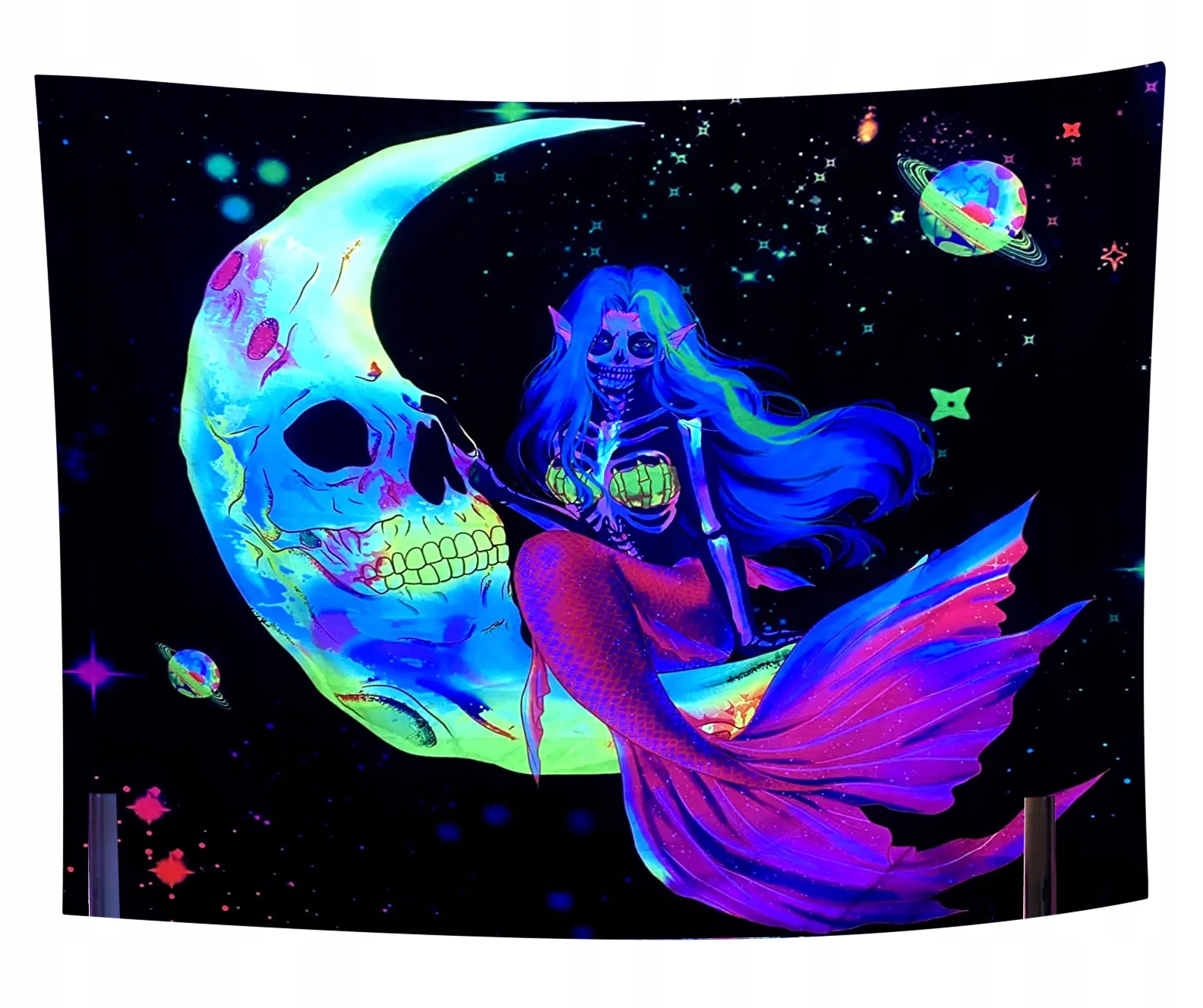 - Efekt UV/Black Light: Specjalna farba reaktywna sprawia, że gobelin ożywa pod światłem UV lub czarnym światłem, odsłaniając jego pełną, hipnotyzującą głębię i żywe kolory.