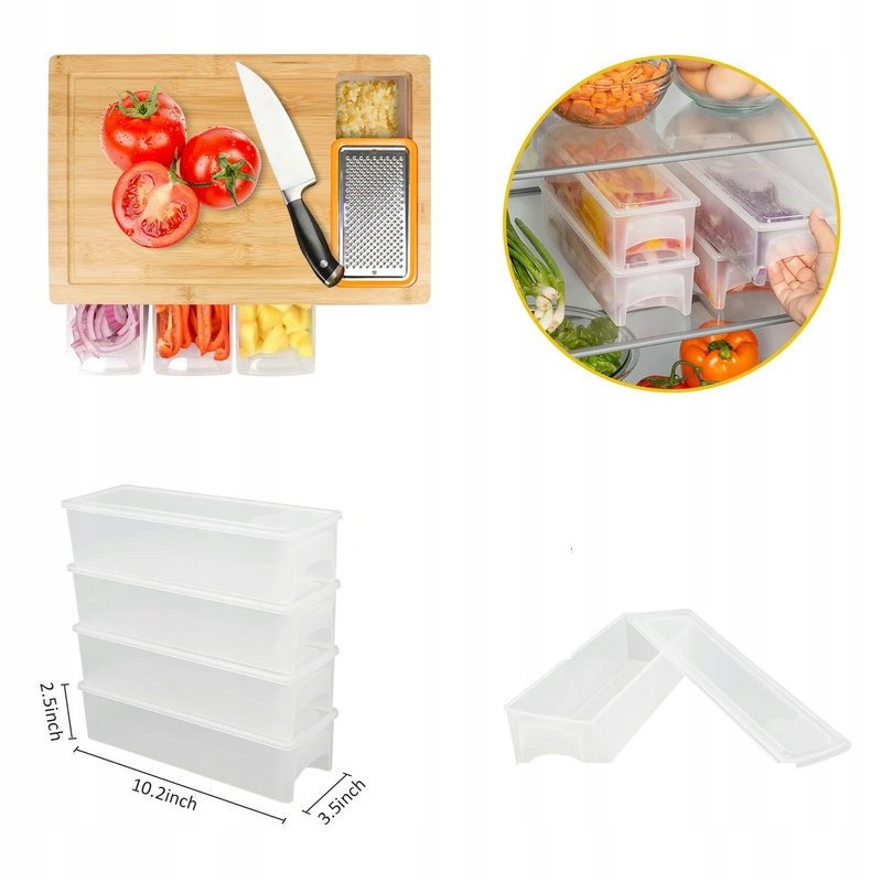 - 4 x Przezroczyste pojemniki na pokrojone składniki