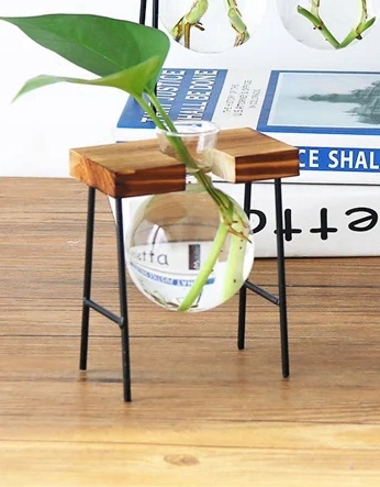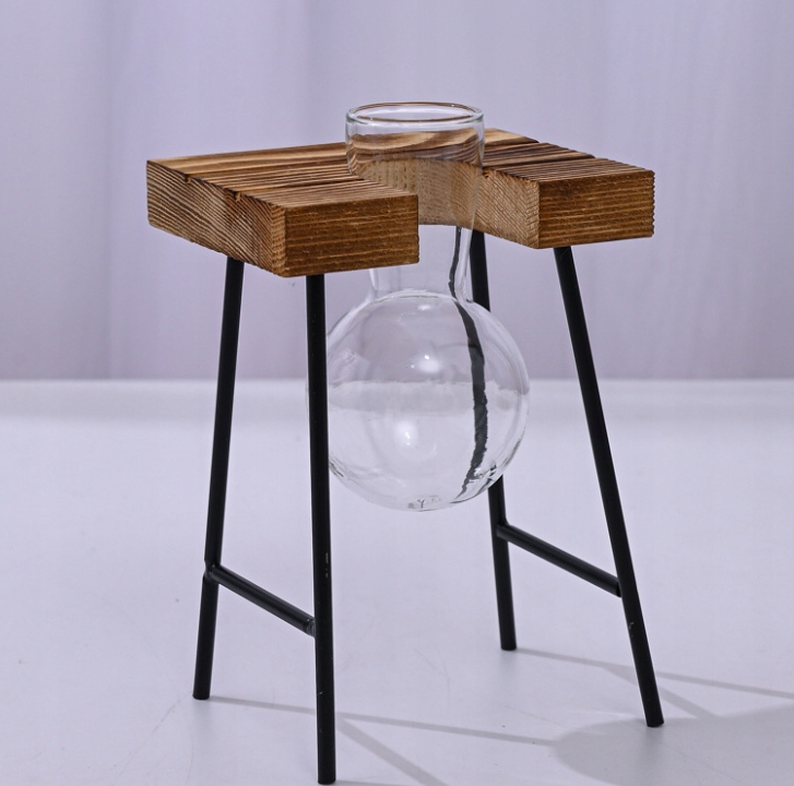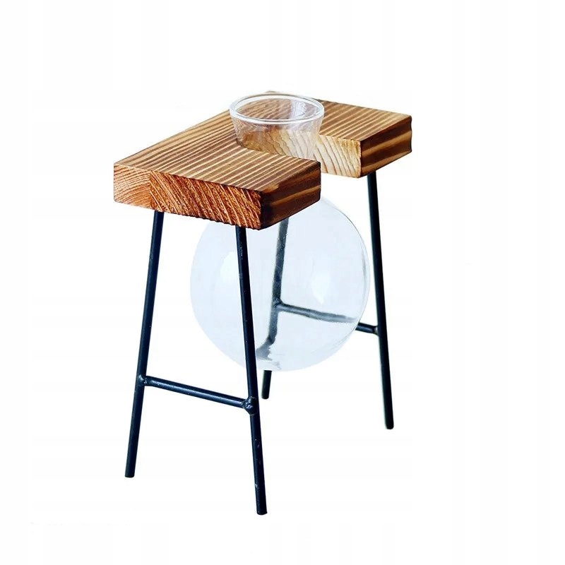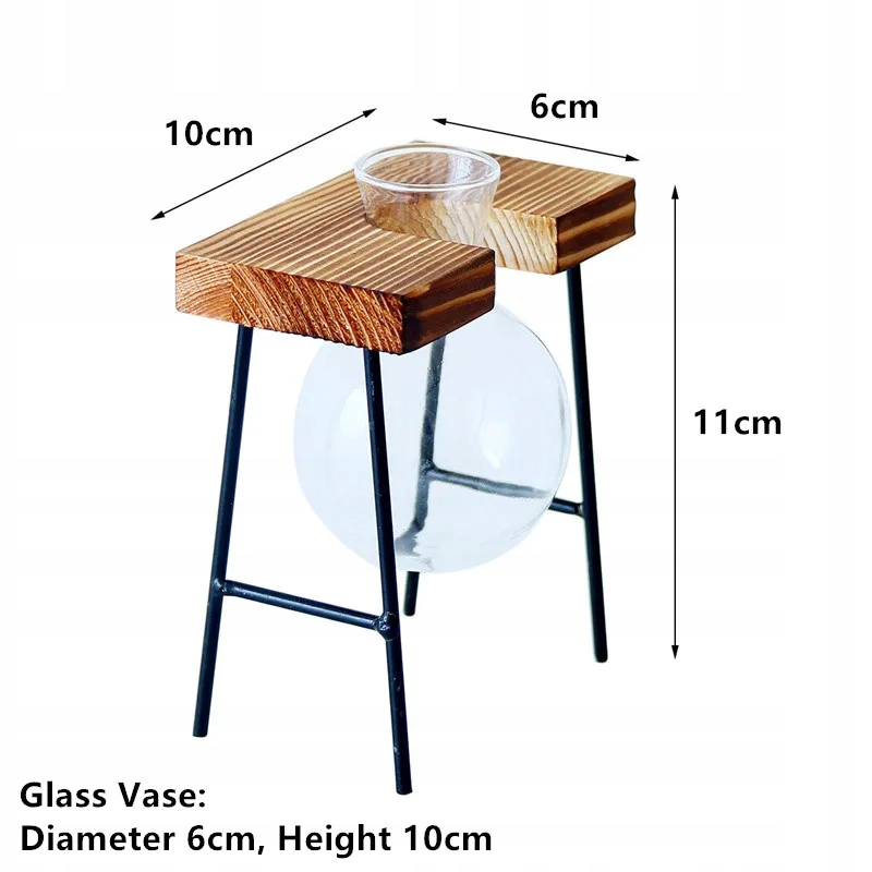Minimalistyczna Doniczka Hydropiniczna z Drewna i Metalu z Szklanym Wazonem