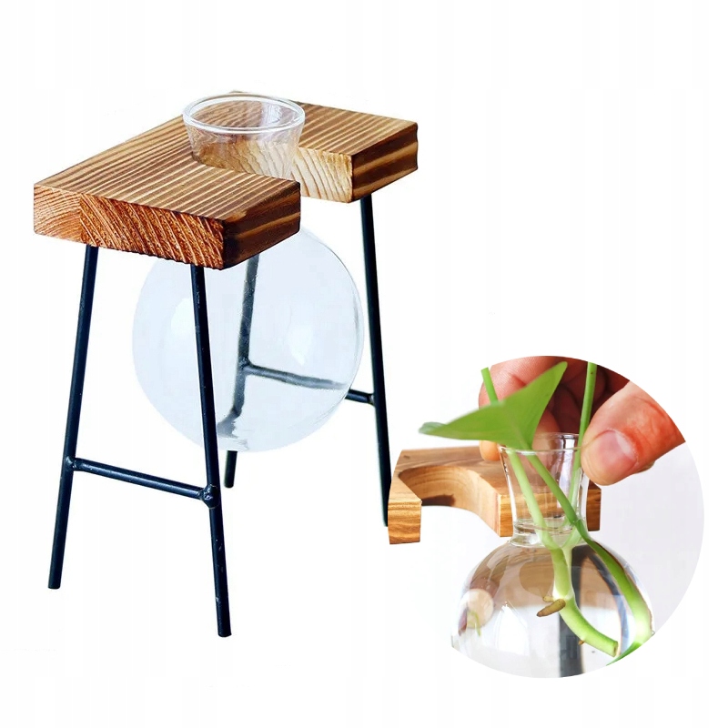 DONICA Ozdobna SZKLANA DREWNO Hydroponika UKORZENIACZ 1szt STOJAK BAMBUS