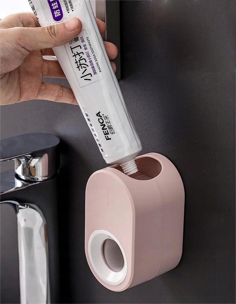 Jest to uchwyt, w którym na dole możesz przechowywać dwie szczoteczki do zębów. Po wyciągnięciu szczoteczki wkładamy ją w otwór przyciskając dźwignię, która dozuje nam na szczoteczce pastę do zębów. Proste i niezawodne rozwiązanie.