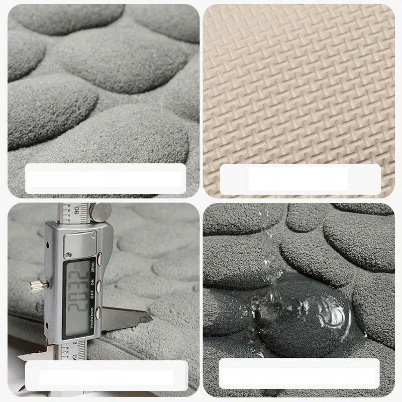 Luksusowa Mata Łazienkowa z Pianki Memory, Wzór Brukowany KAMIEŃ - Antypoślizgowa, Chłodna i Przyjazna dla Skóry
