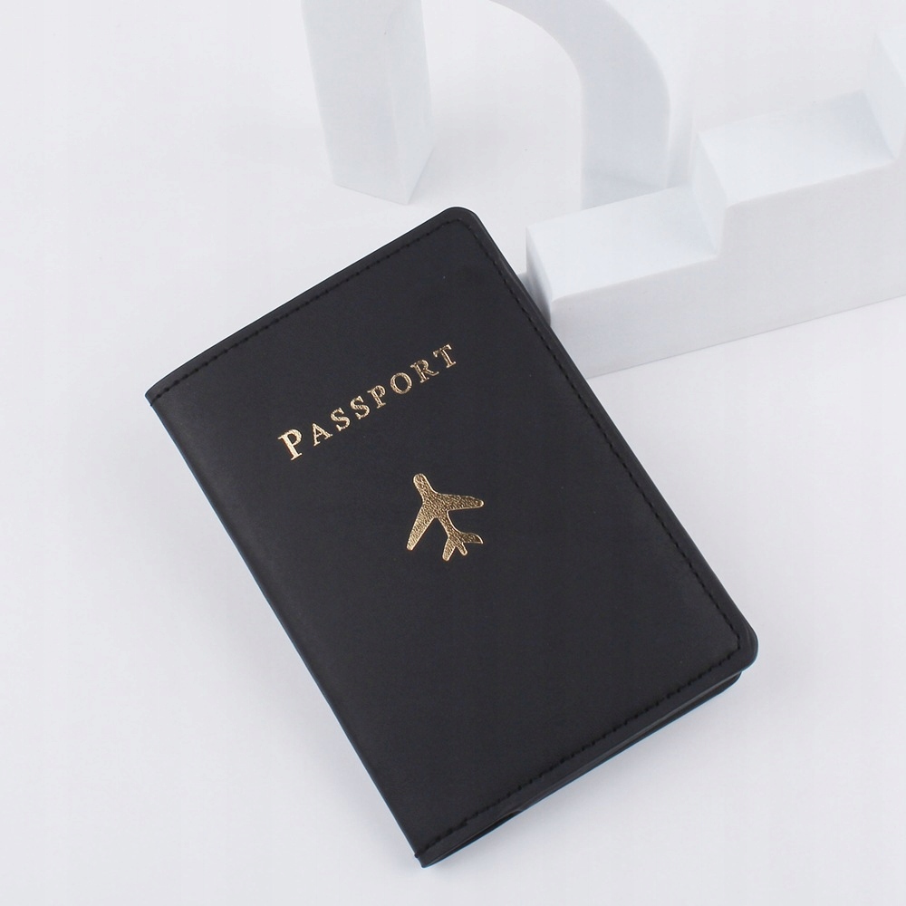 - Design: Subtelne złote zdobienia z napisem "PASSPORT" i motywem samolotu dodają elegancji