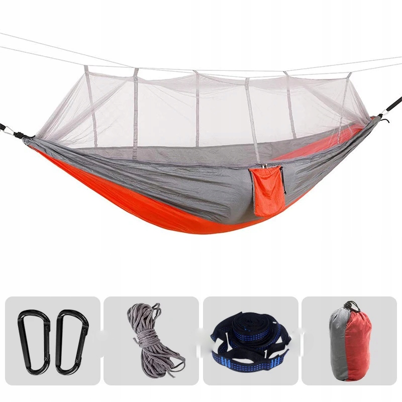 HAMAK Kempingowy 250kg OGRODOWY z MOSKITIERĄ Dwuoosobowy 260x140cm ODPORNY