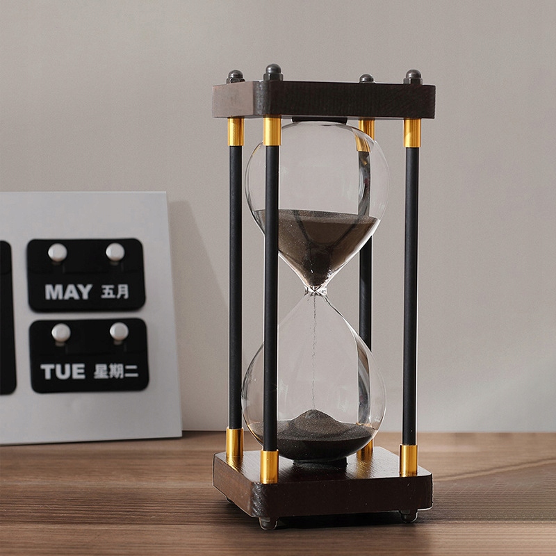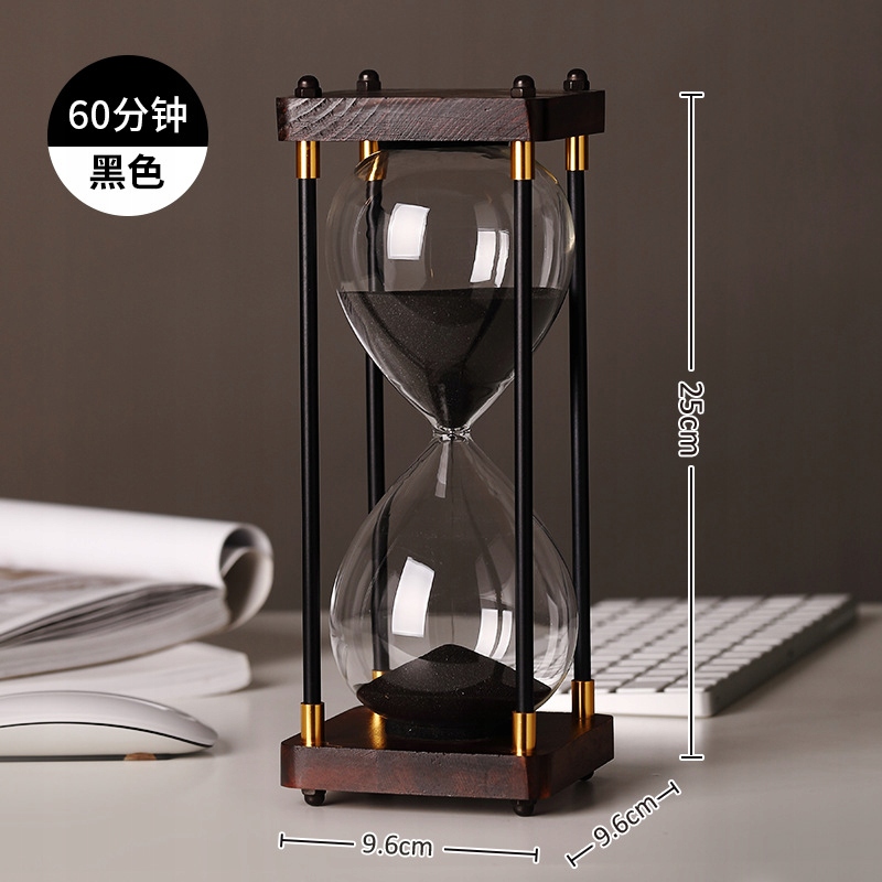 KLEPSYDRA RETRO SZKLANO-DREWNIANA OZDOBA 60 MINUT XXL 25x10cm CZARNA