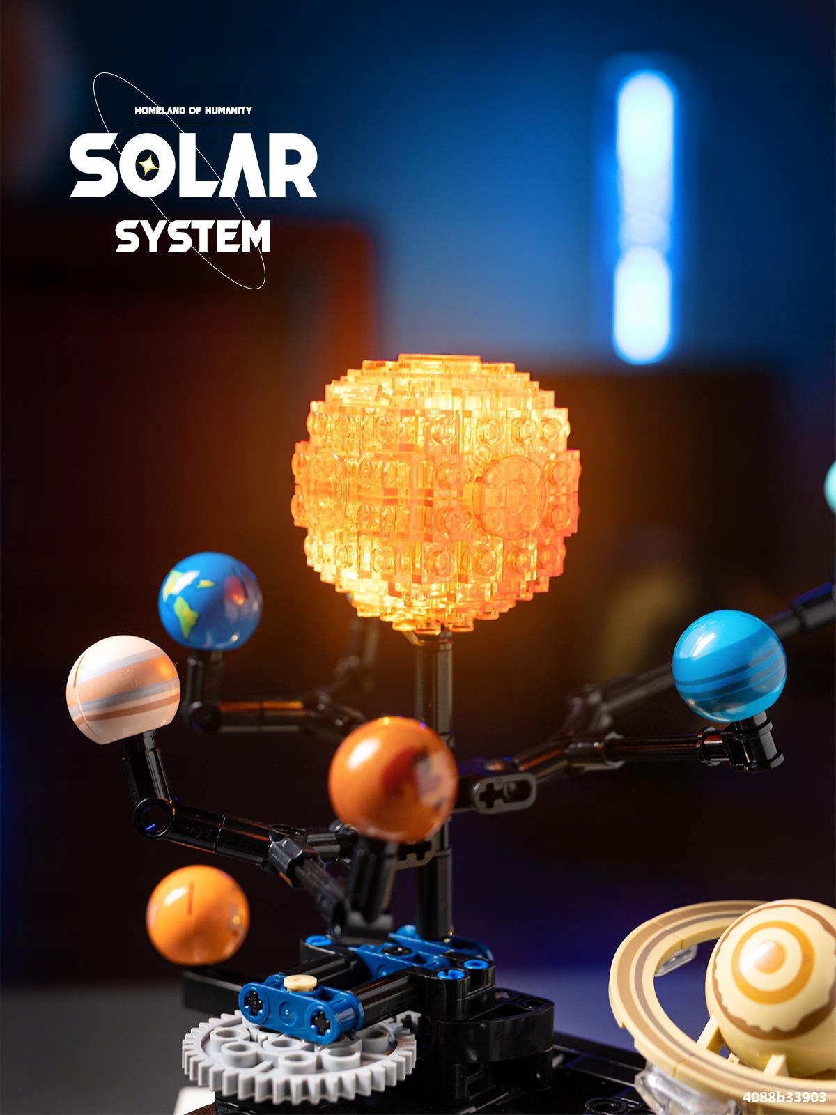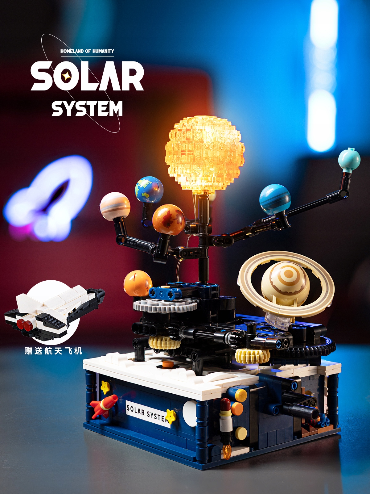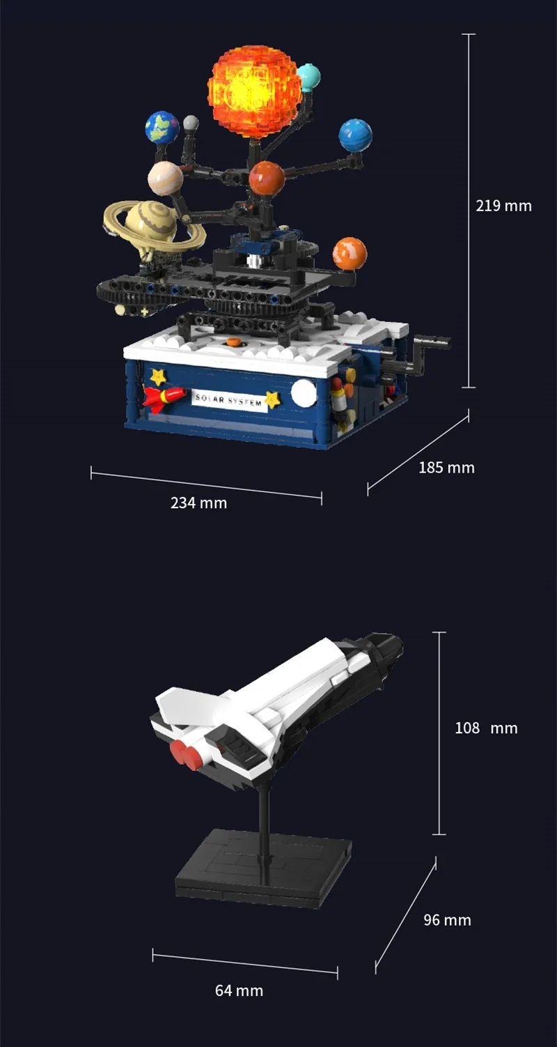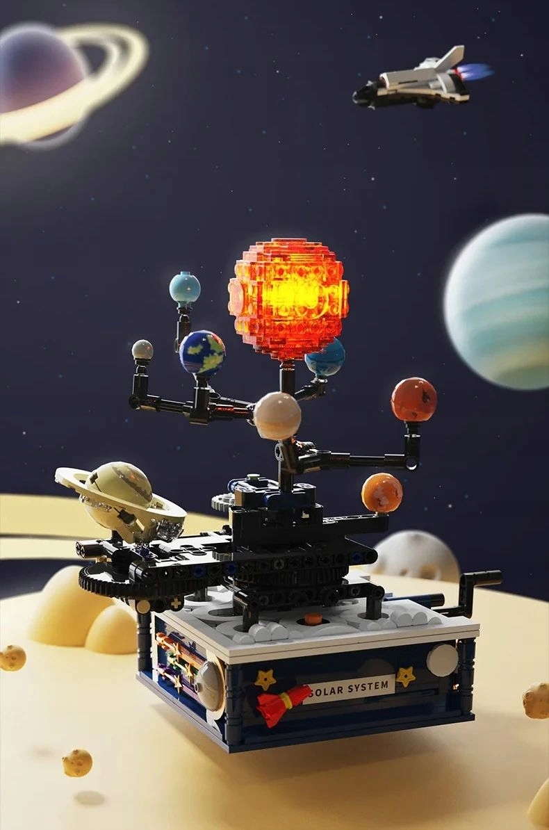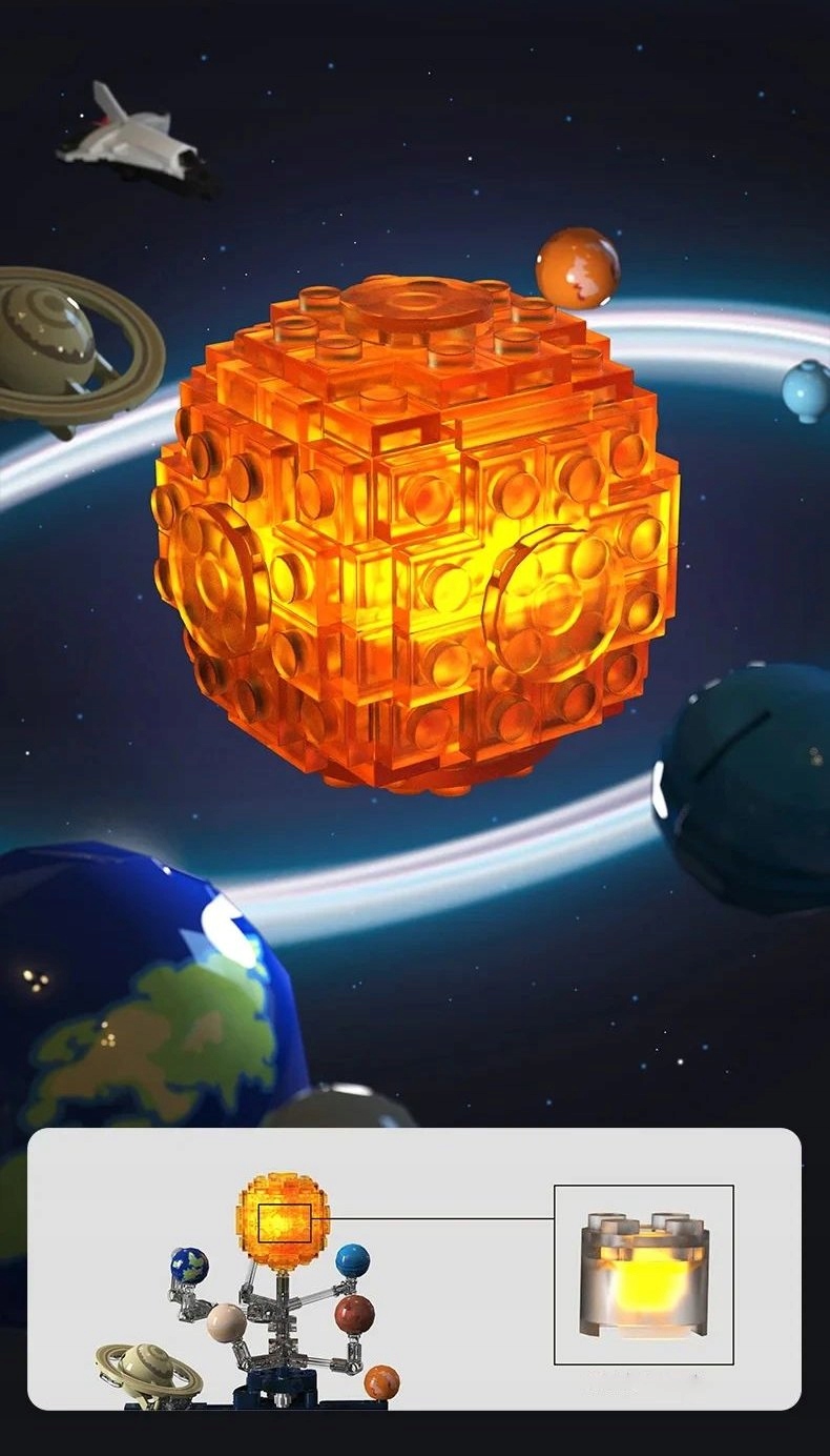 Klocki KONSTRUKCYJNE Ruchomy UKŁAD SŁONECZNY ZIEMIA SŁOŃCE KOSMOS LED