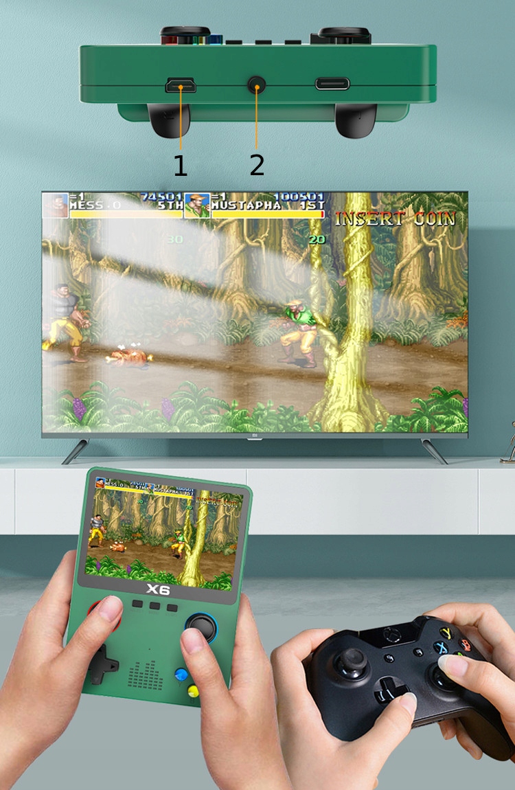 - Obsługuje gry dla dwóch graczy podłączone do uchwytu i duży ekran