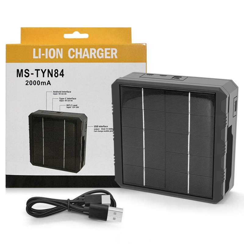 - Zasilanie: panel solarny, gniazdo DC 12–24V, micro USB, USB-C