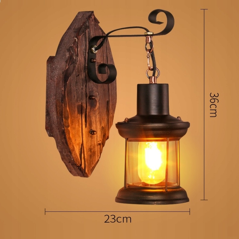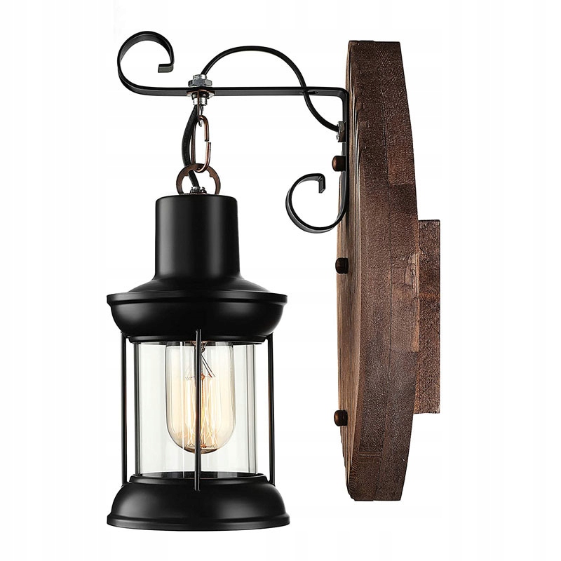 LAMPA ŚCIENNA DREWNIANA KINKIET ŻELIWNY LOFT GOSPODA VINTAGE OZDOBNA E27