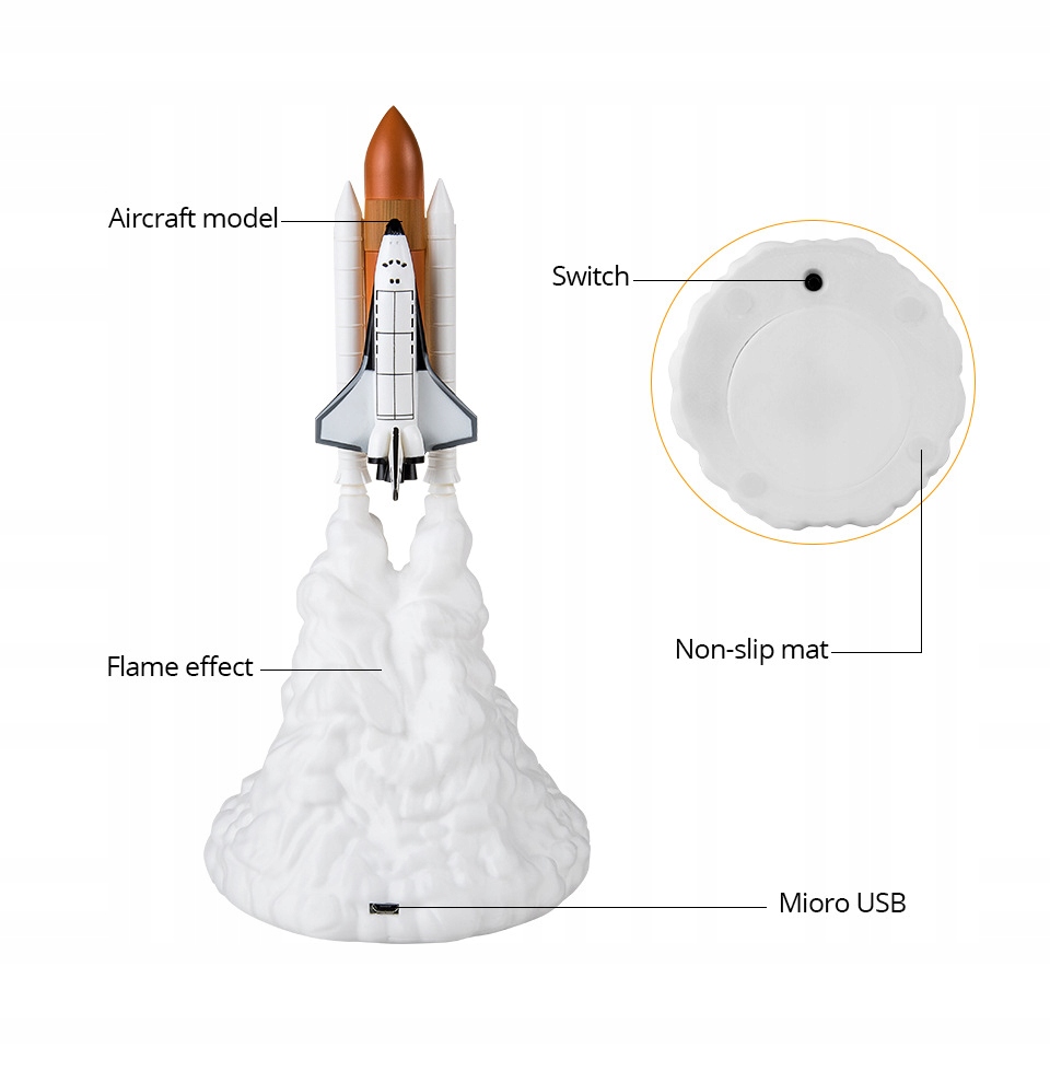 - 1 x 3D drukowana lampka w kształcie rakiety