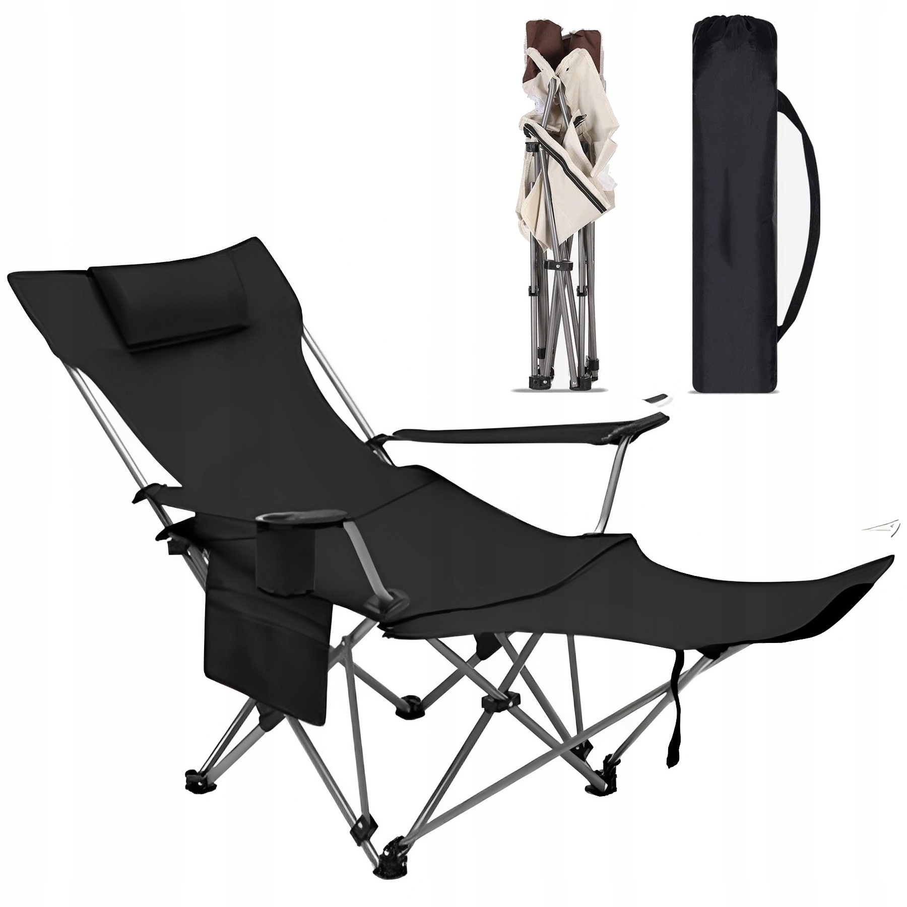 LEŻAK OGRODOWY TURYSTYCZNY PLAŻOWY SKŁADANY POKROWIEC CZARNY FOTEL PODNÓŻEK