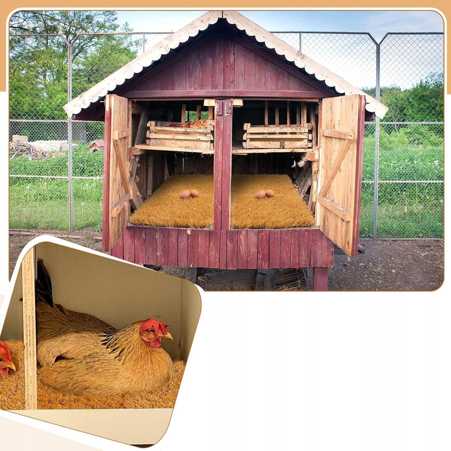 Praktyczna i higieniczna mata do gniazd wykonana z wytrzymałej, syntetycznej trawy, zapewniająca wygodne miejsce do składania jaj. To idealne rozwiązanie, które zastępuje tradycyjną słomę czy siano – jest łatwe w czyszczeniu, trwałe i znacznie bardziej higieniczne. Dzięki miękkiej, sprężystej strukturze chroni jaja przed pękaniem, a jednocześnie zapewnia kurom komfort i poczucie bezpieczeństwa.