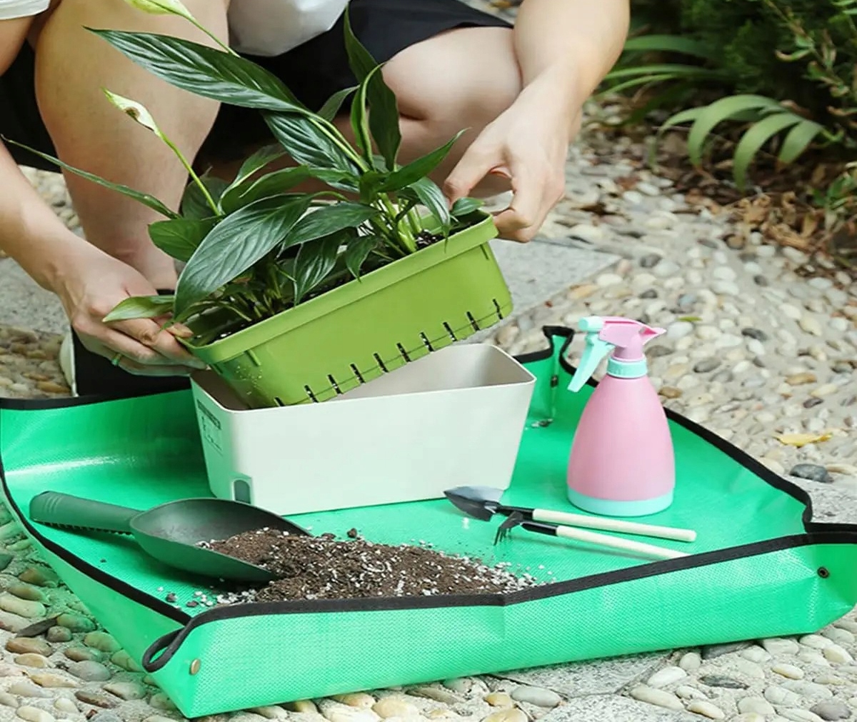 Praktyczna i wygodna mata ogrodnicza to niezastąpiony pomocnik podczas przesadzania roślin, mieszania ziemi czy wymiany doniczek – zarówno w domu, na balkonie, jak i w ogrodzie. Dzięki podwyższonym krawędziom i zapięciom w rogach skutecznie zapobiega rozsypywaniu się ziemi i rozlewaniu wody, utrzymując miejsce pracy w czystości.