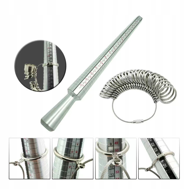 Miarka jubilerska do pierścionków metalowy zestaw miara