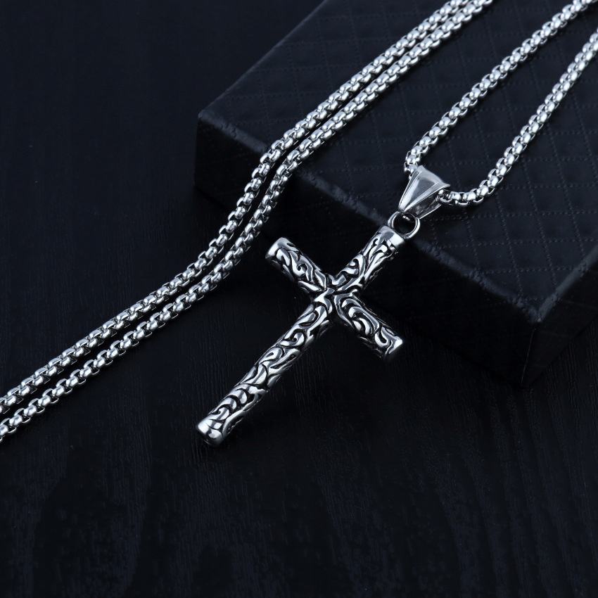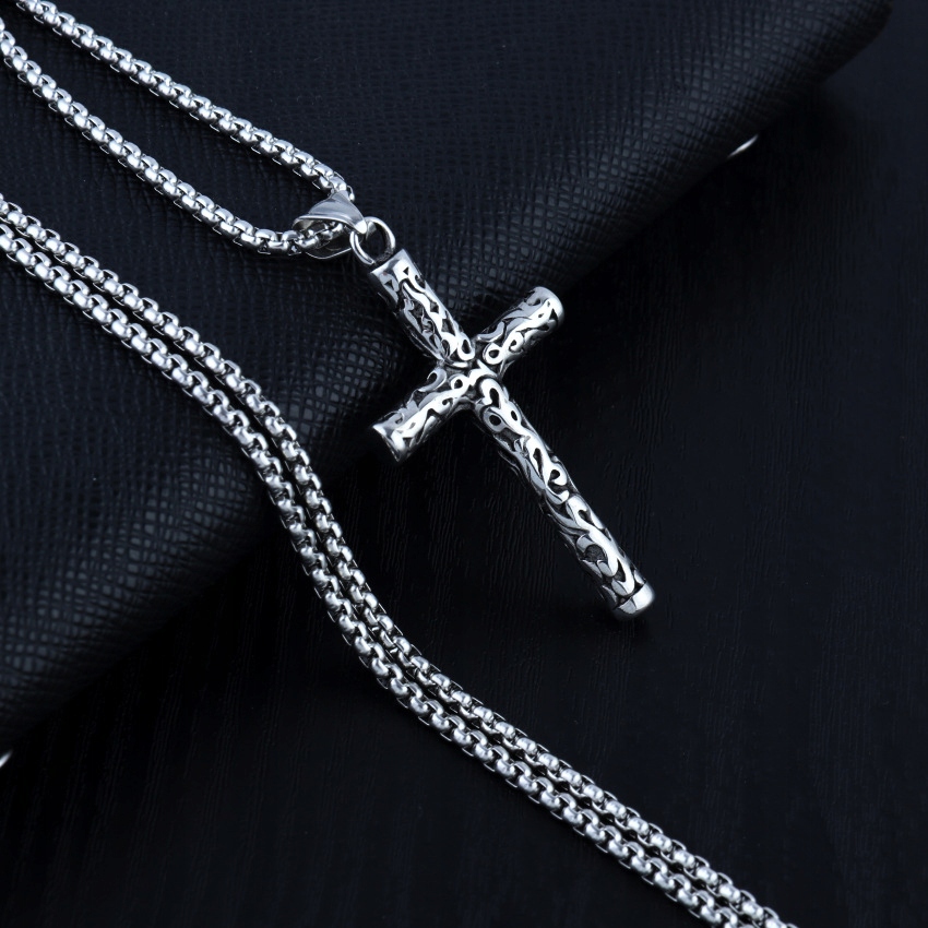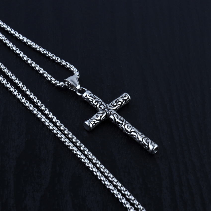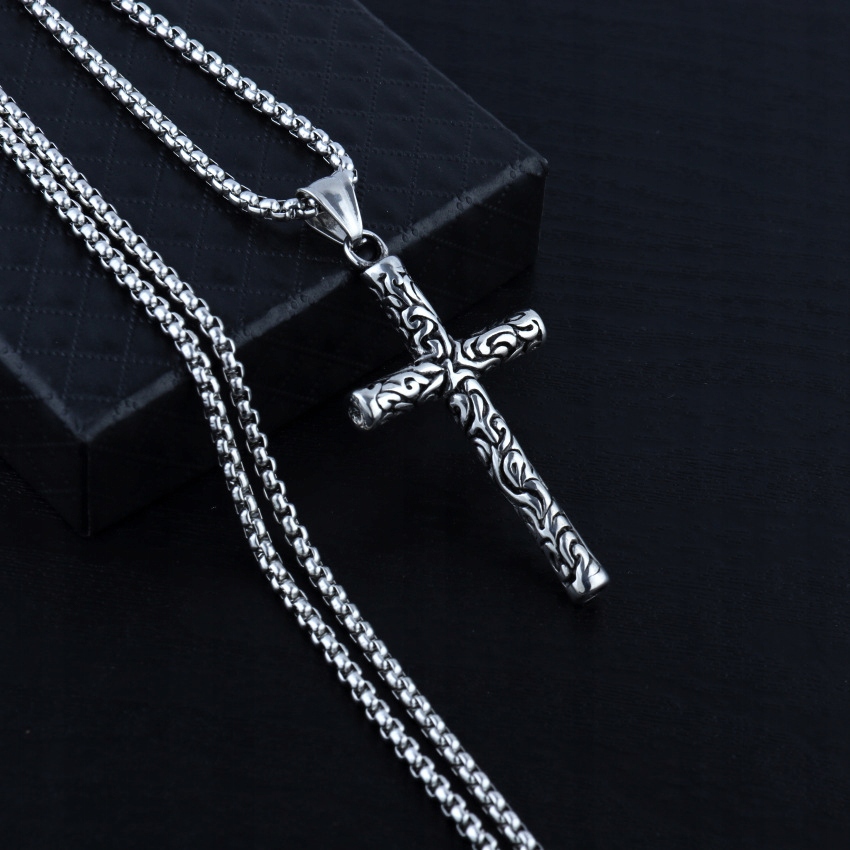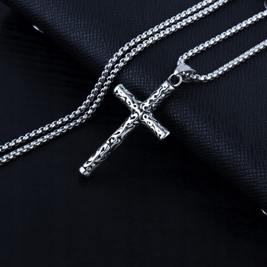 Naszyjnik srebrny stal łańcuszek krzyżyk 309