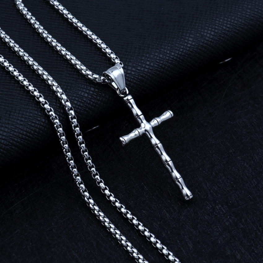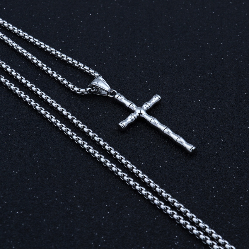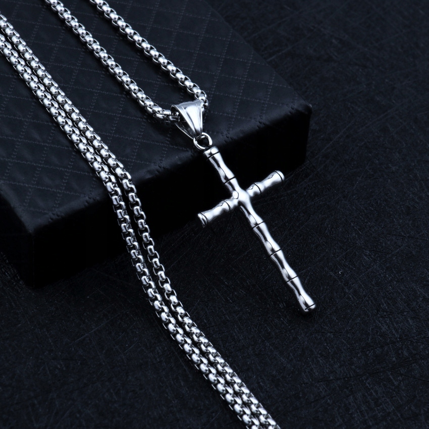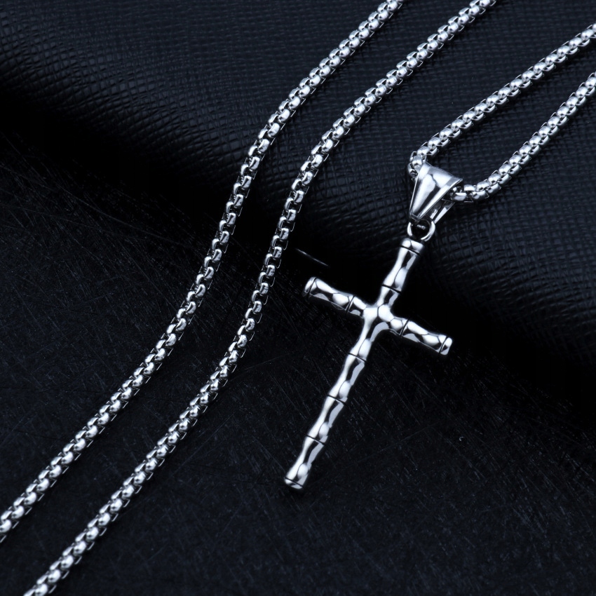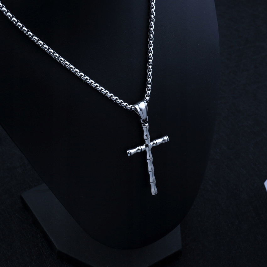 Naszyjnik srebrny stal łańcuszek krzyżyk 324