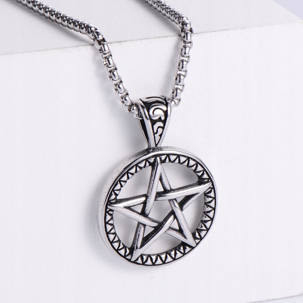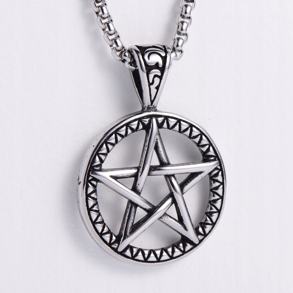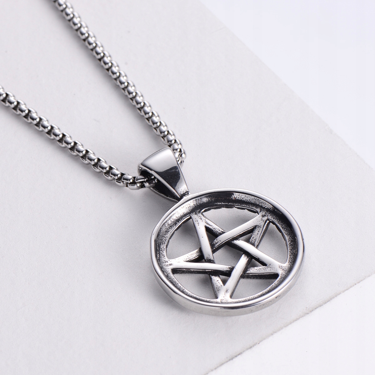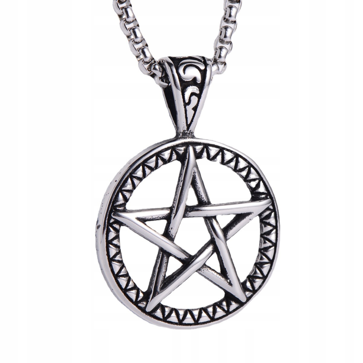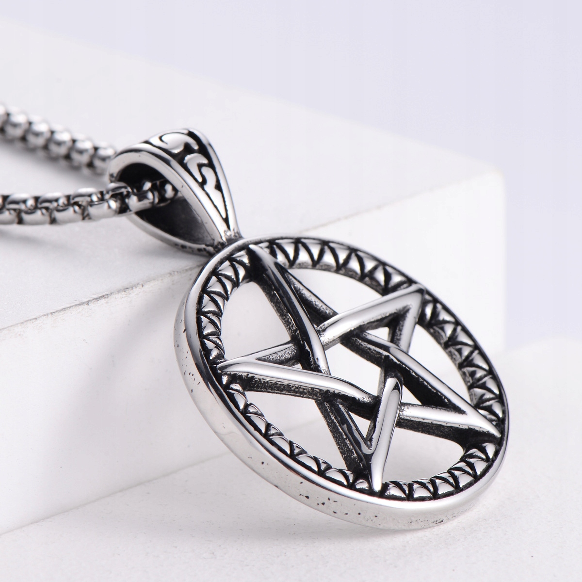 Naszyjnik srebrny stal łańcuszek pentagram 311