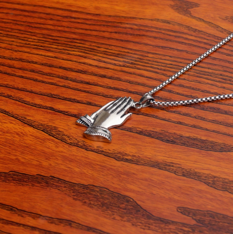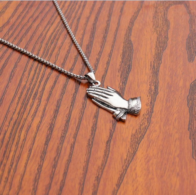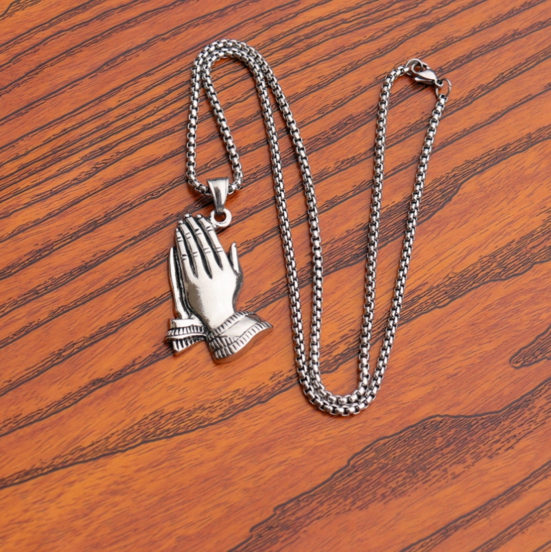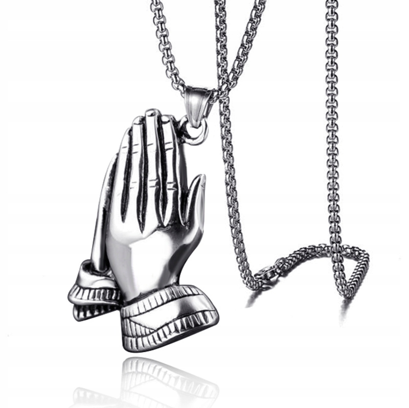 Naszyjnik srebrny stal łańcuszek ręce modlitwa 314