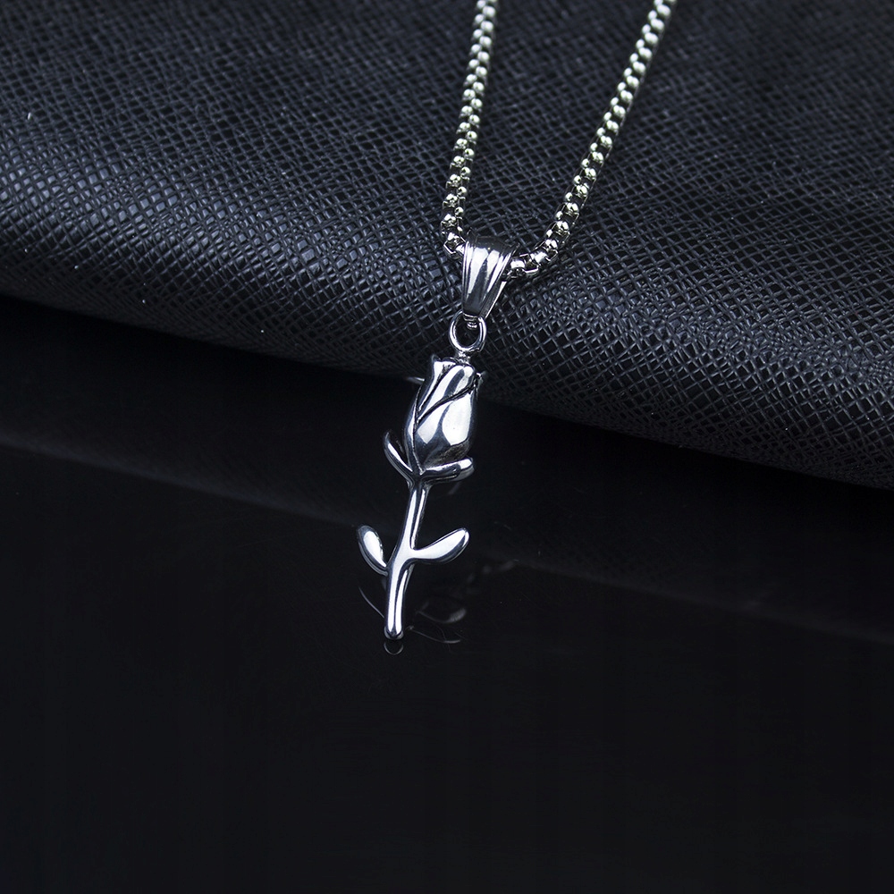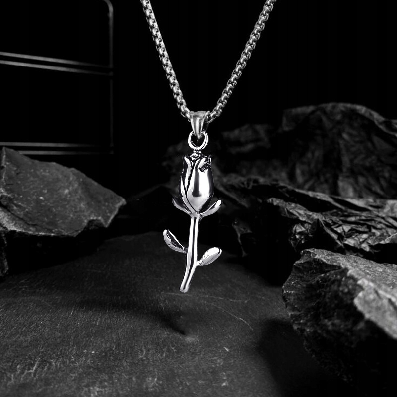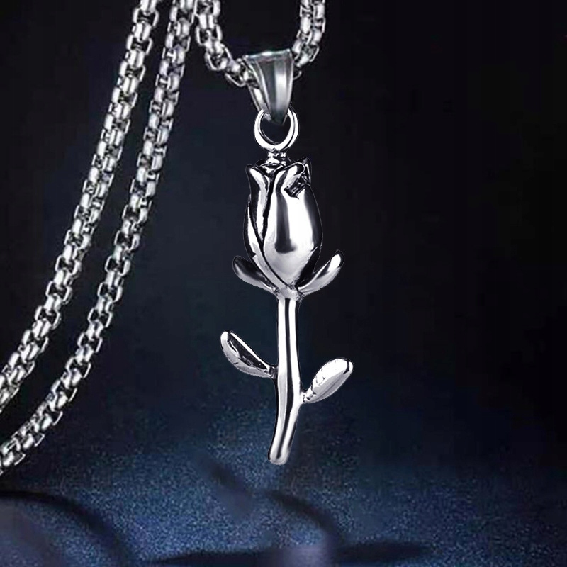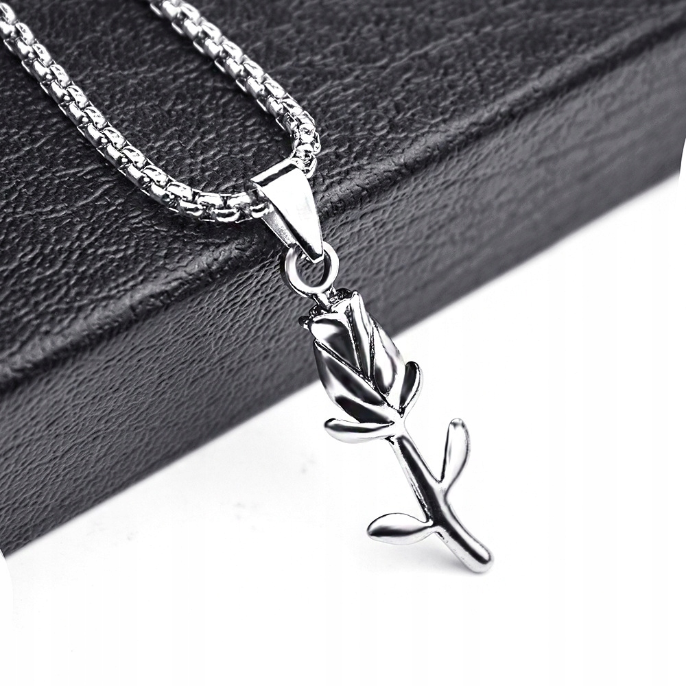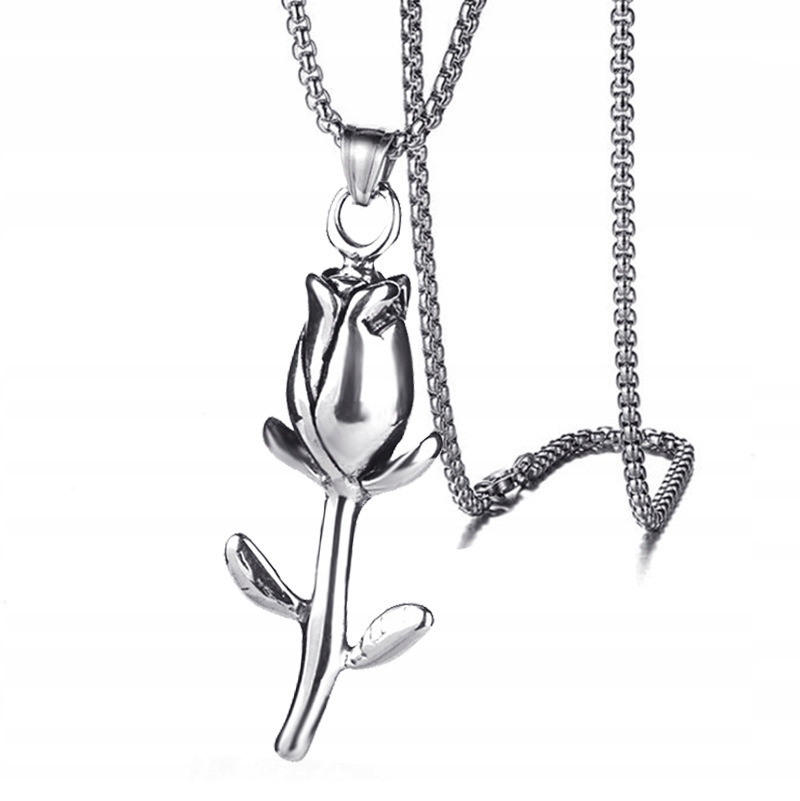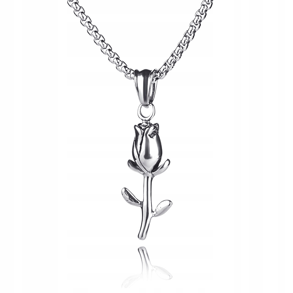 Naszyjnik srebrny stal łańcuszek róża kwiat 322