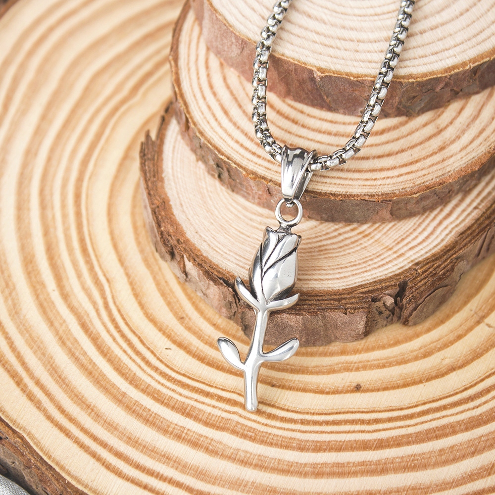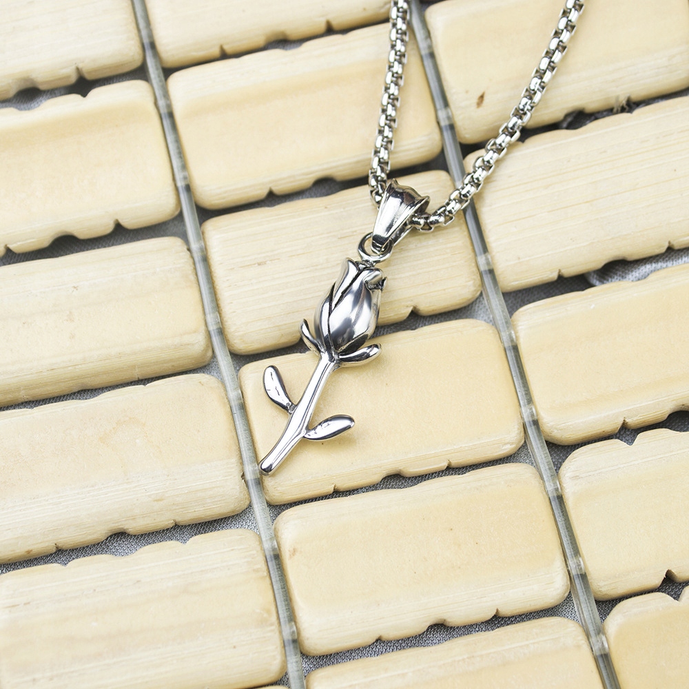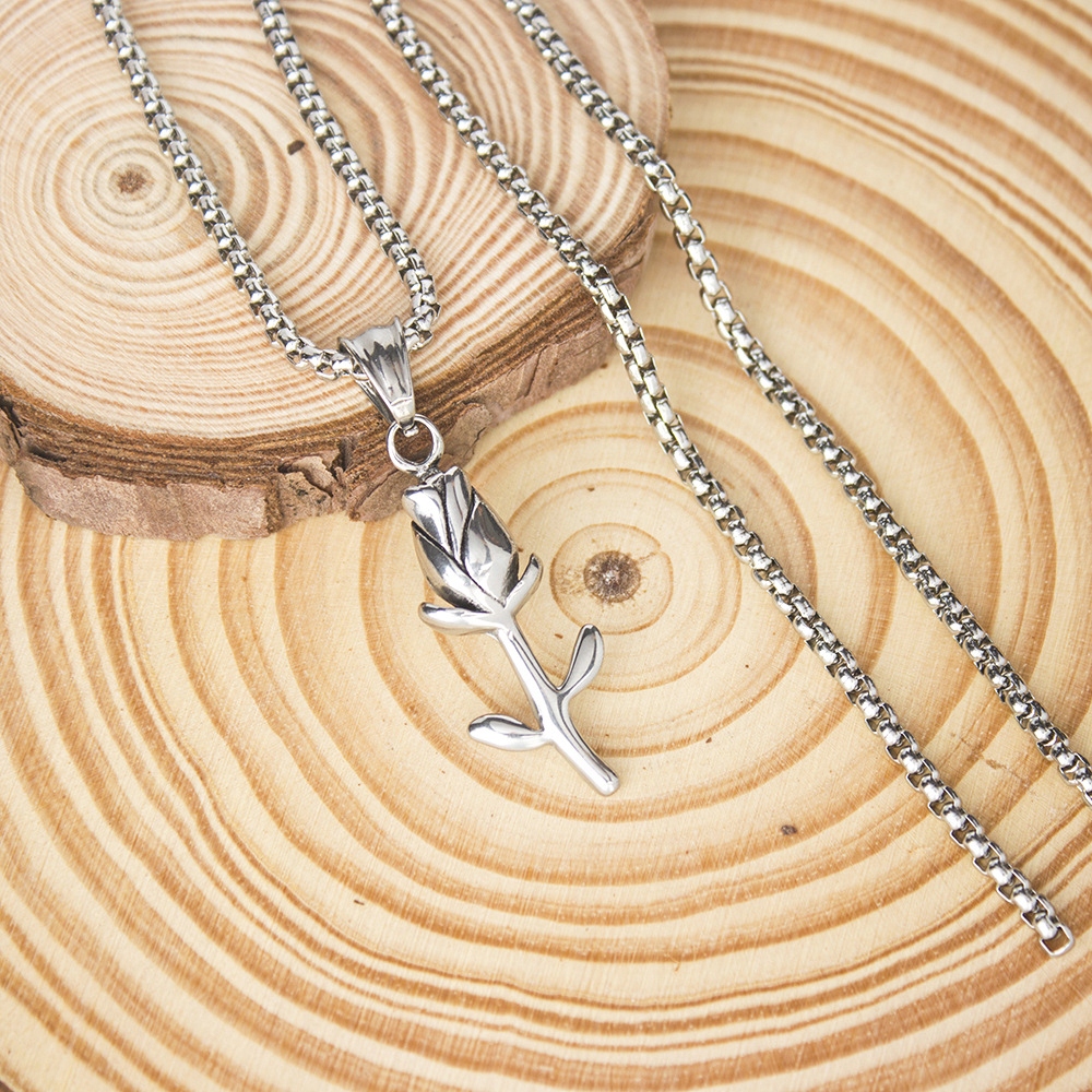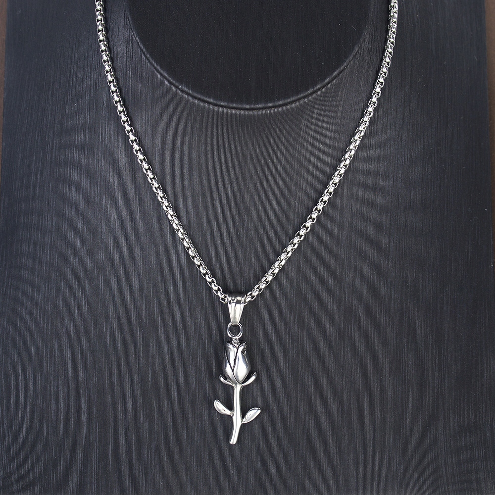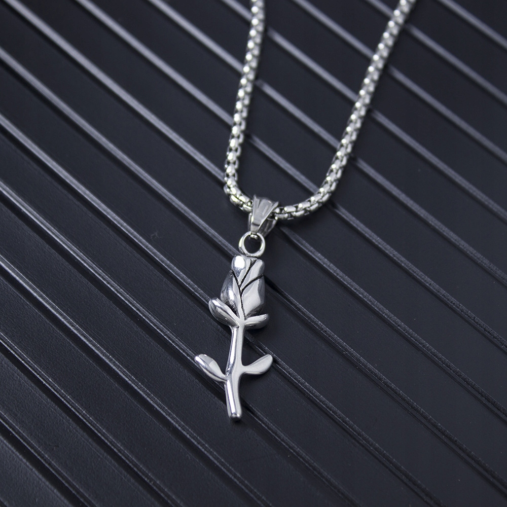 Naszyjnik srebrny stal łańcuszek róża kwiat 322