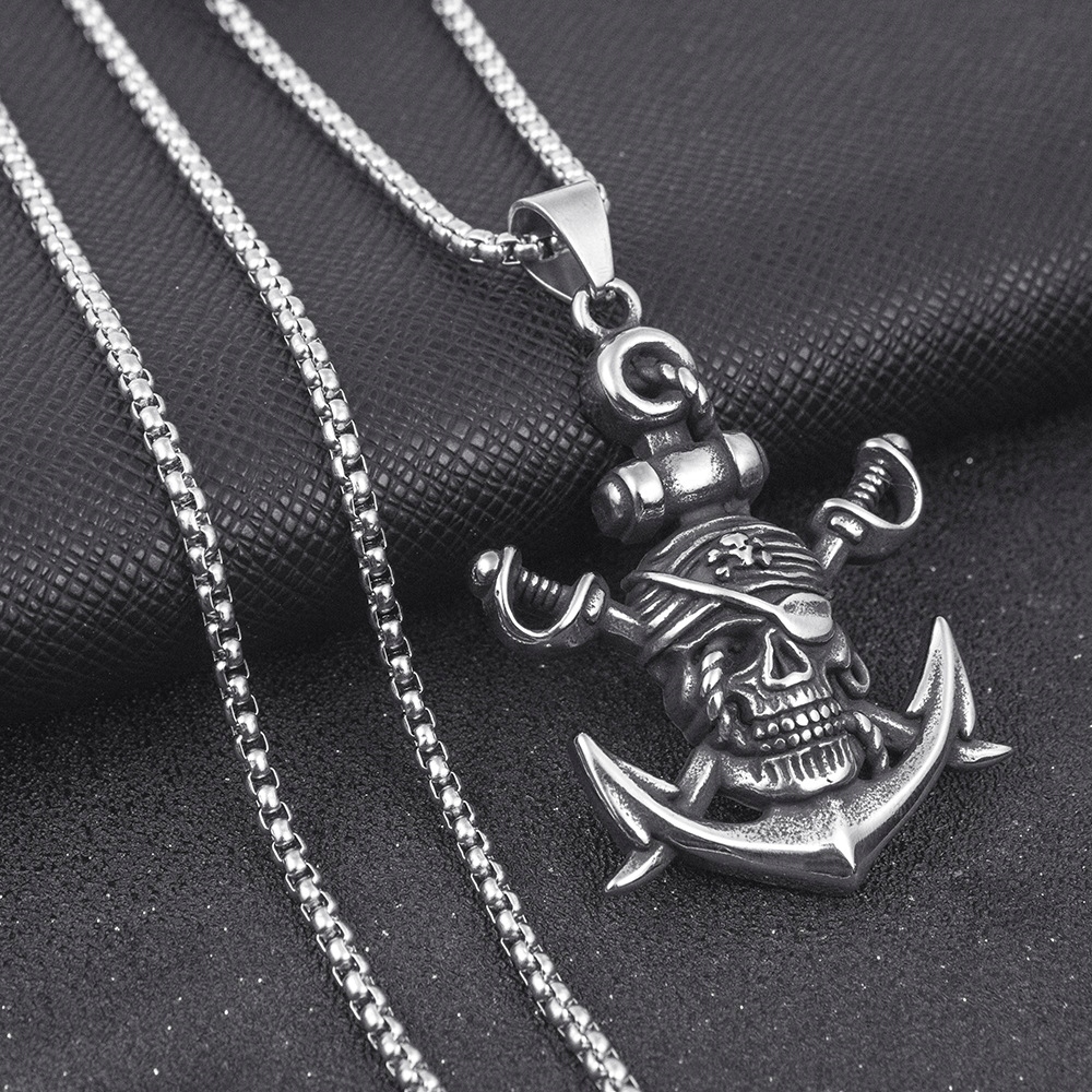 Naszyjnik srebrny stal piraci filmowy kotwica 381