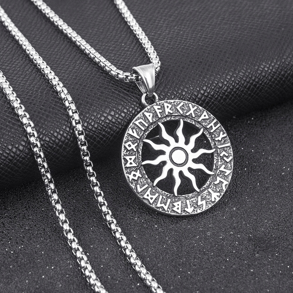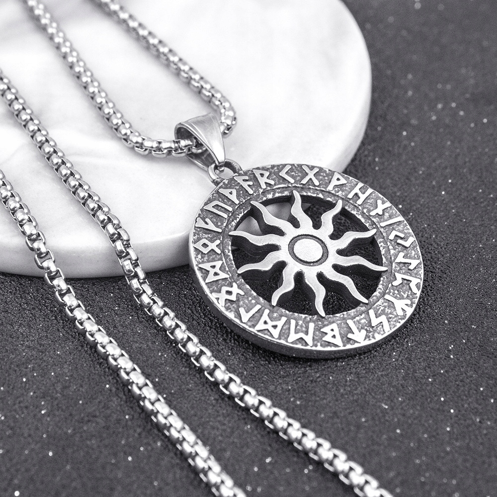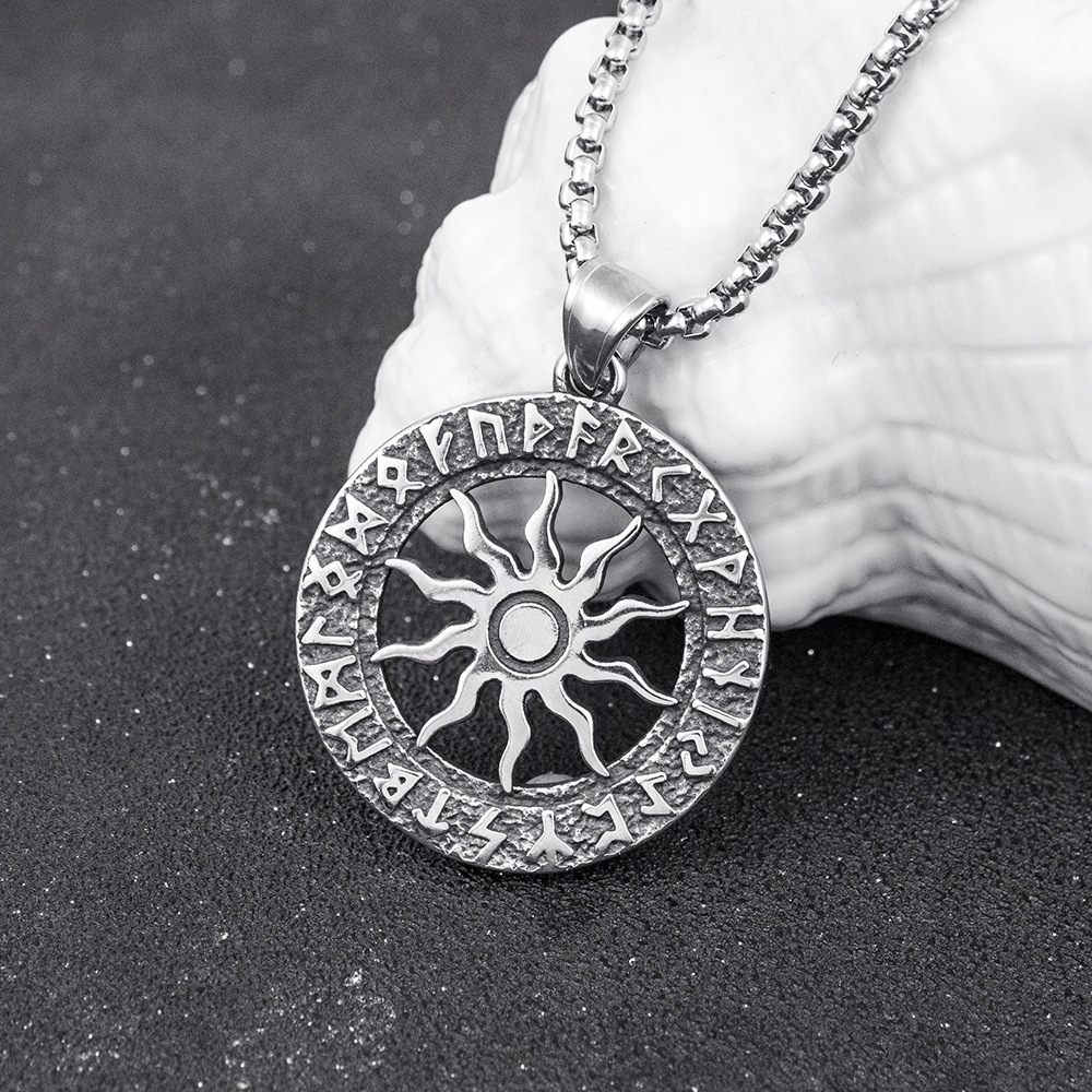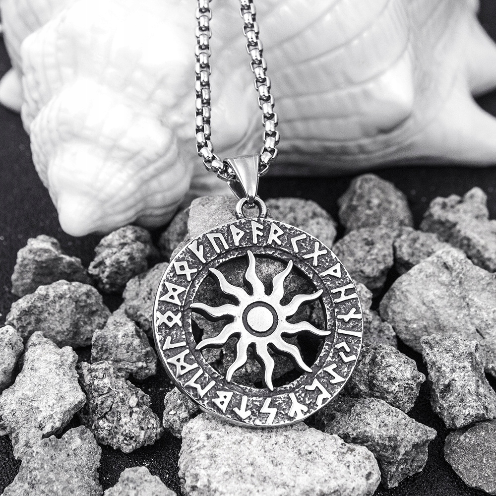 Naszyjnik srebrny stal słońce ra hieroglify 385