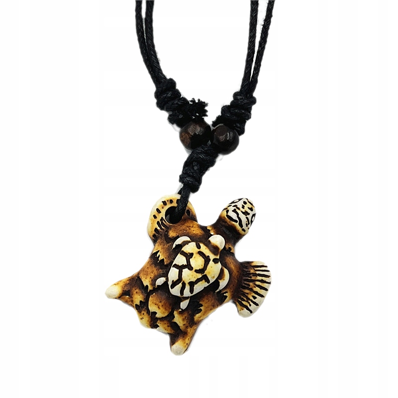Wyjątkowy naszyjnik z wisiorkiem w kształcie żółwia to idealny wybór dla tych, którzy cenią oryginalne i etniczne akcenty w swojej biżuterii. Naszyjnik wykonany z naturalnego, czarnego sznurka bawełnianego jest regulowany, co pozwala na idealne dopasowanie długości do indywidualnych potrzeb. Wisiorek, starannie wykończony z żywicy, przyciąga uwagę swoją unikatową teksturą i wzornictwem.