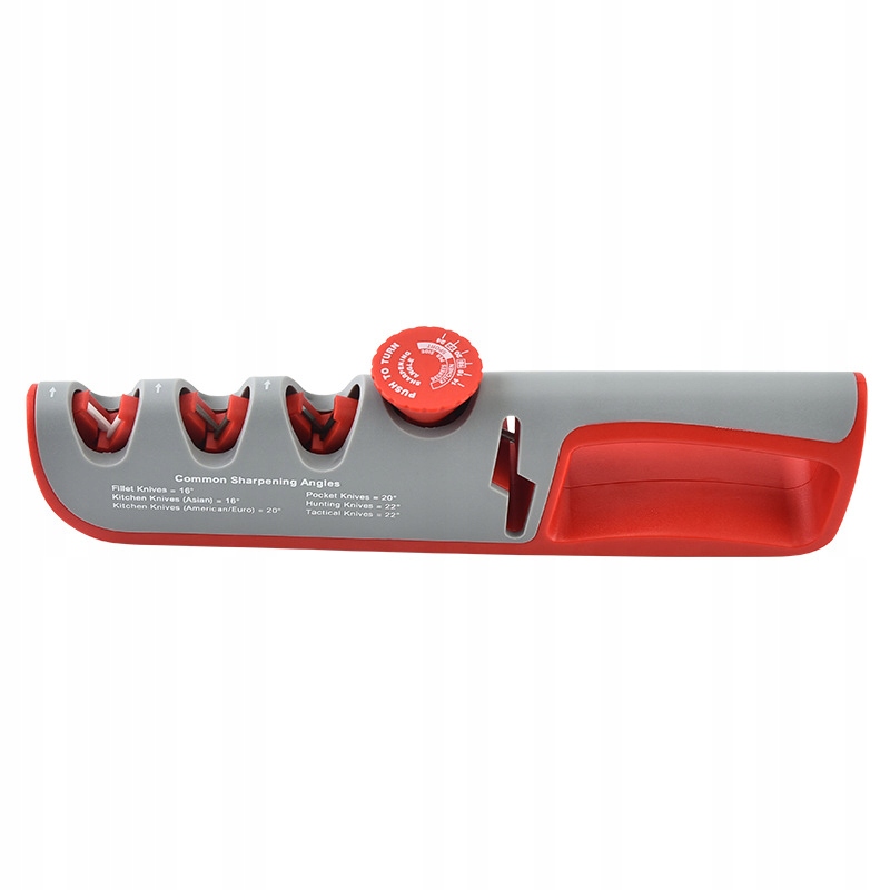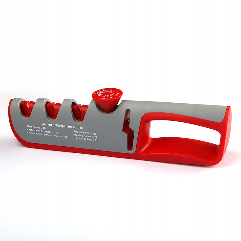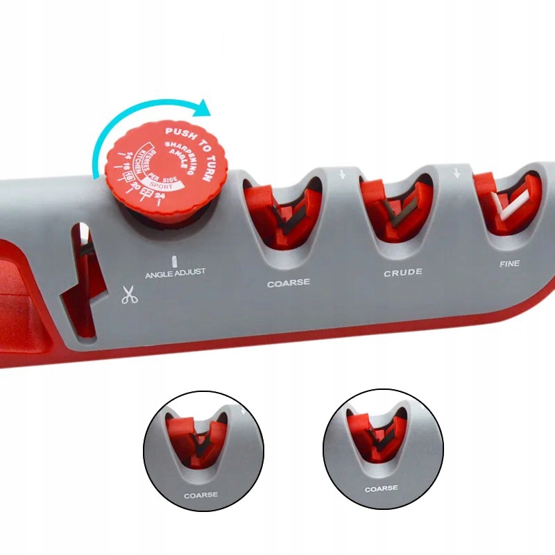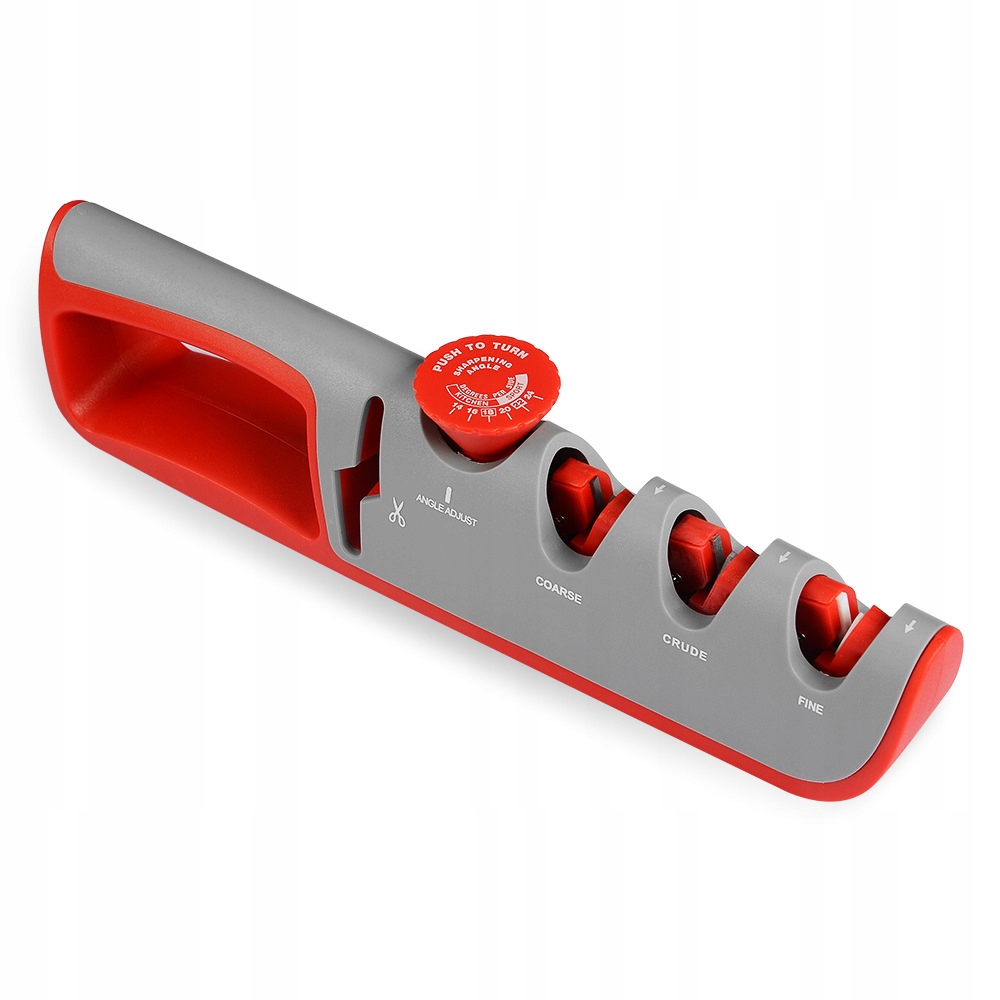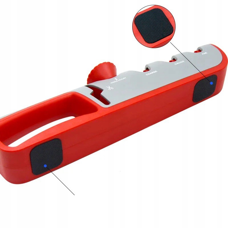 Genialna ostrzałka 4w1 - aż trzy różne końcówki do ostrzenia noży, regulator do kąta nachylenia ostrzałek oraz ostrzałka do nożyczek.