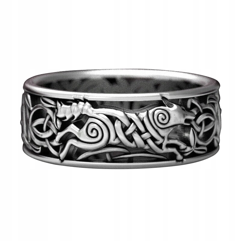 Pierścień sygnet wikingów nordycki wilk runa 148