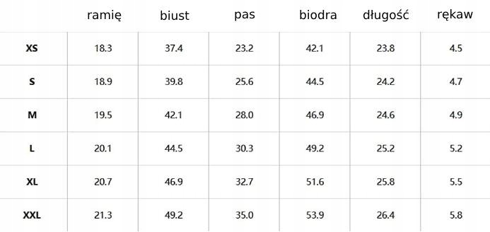 Wymiary bluzka i spodenki