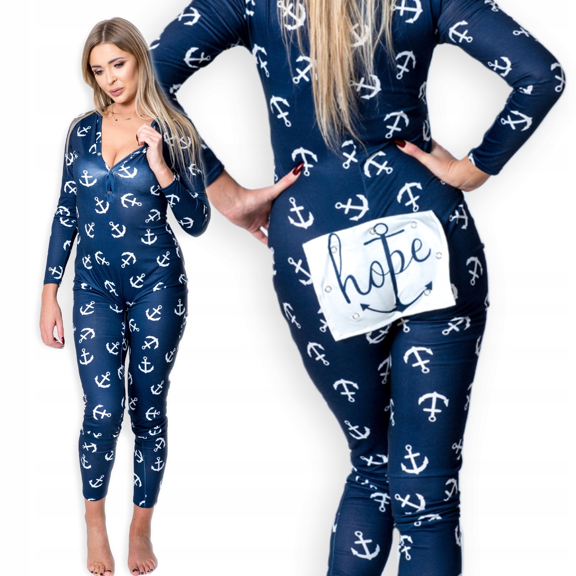 Piżama damska prezent na walentynki dla dziewczyny rozpinana kotwica s