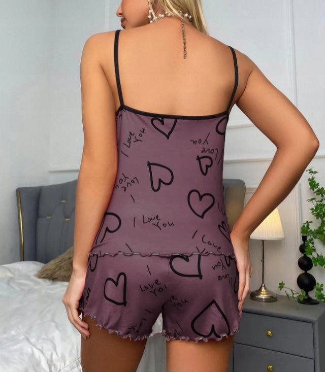 Piżama damska prezent na walentynki dla niej fioletowa serca dwuczęściowa s