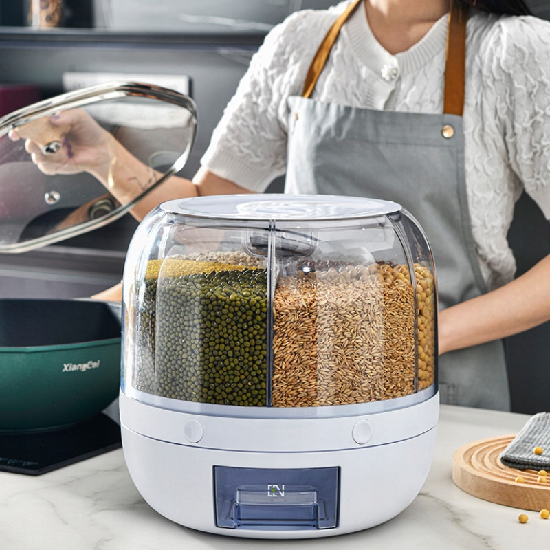 ✅ Górna pokrywa ułatwia dosypywanie produktów. Obrotowa konstrukcja dzięki, której z łatwością dozujesz wybrany przez Ciebie produkt. Wystarczy obrócić i wcisnąć przycisk na tak długo jak tylko chcesz. Wybrany przez Ciebie produkt zostanie wsypany do pojemnika na dole urządzenia. Możesz dowolnie dozować wybraną ilość.