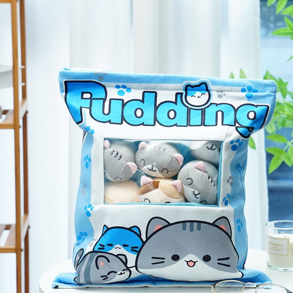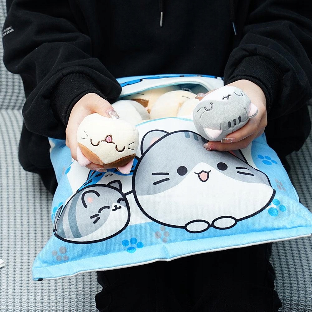 • 1 × poduszka „Pudding” z 8 mini pluszowymi kotkami