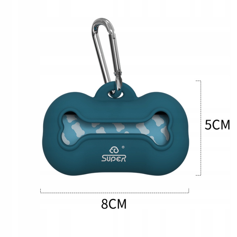 Praktyczny i stylowy pojemnik na worki na psie odchody, wykonany z trwałego, miękkiego silikonu. Wyposażony w solidny karabińczyk, dzięki któremu z łatwością przypniesz go do obroży, smyczy lub plecaka. Pojemnik ma kompaktowy, poręczny kształt przypominający kość, co dodaje mu uroku. Idealny do codziennych spacerów z psem.