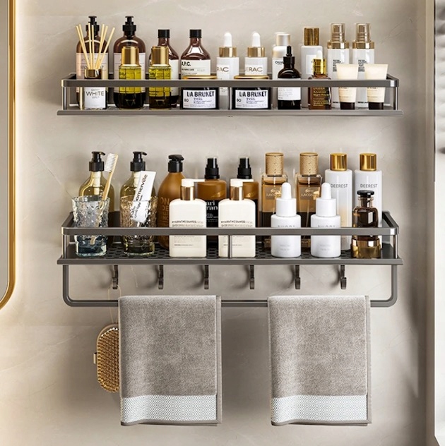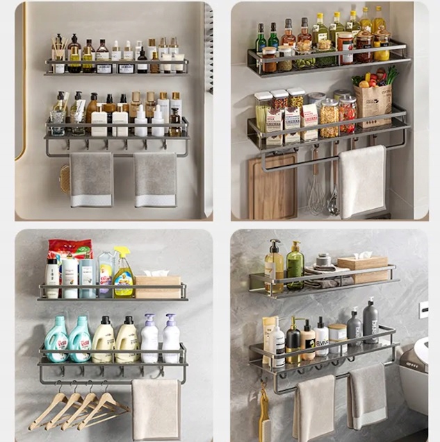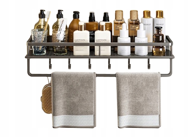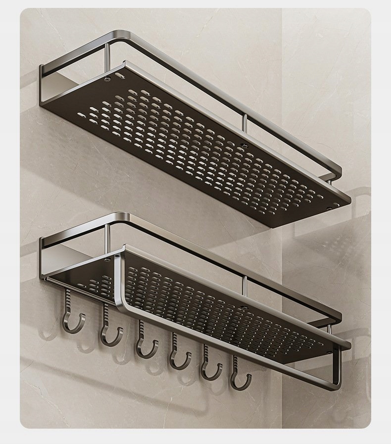 PÓŁKA KUCHENNA Pojedyncza Haczyki Łazienkowa PRYSZNICOWA METALOWA Alu 60cm