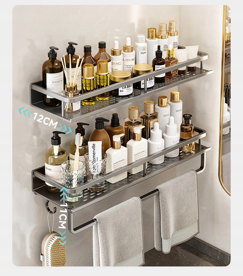 Uprość swoje codzienne życie z naszą stylową i praktyczną półką ścienną! To rozwiązanie, które pozwala zaoszczędzić miejsce i wprowadzić harmonię do każdego domu. Nasza półka jest idealna do kuchni czy łazienki. Udźwignie wiele kilogramów gdyż jest montowana na śruby lub klej (brak w zestawie).