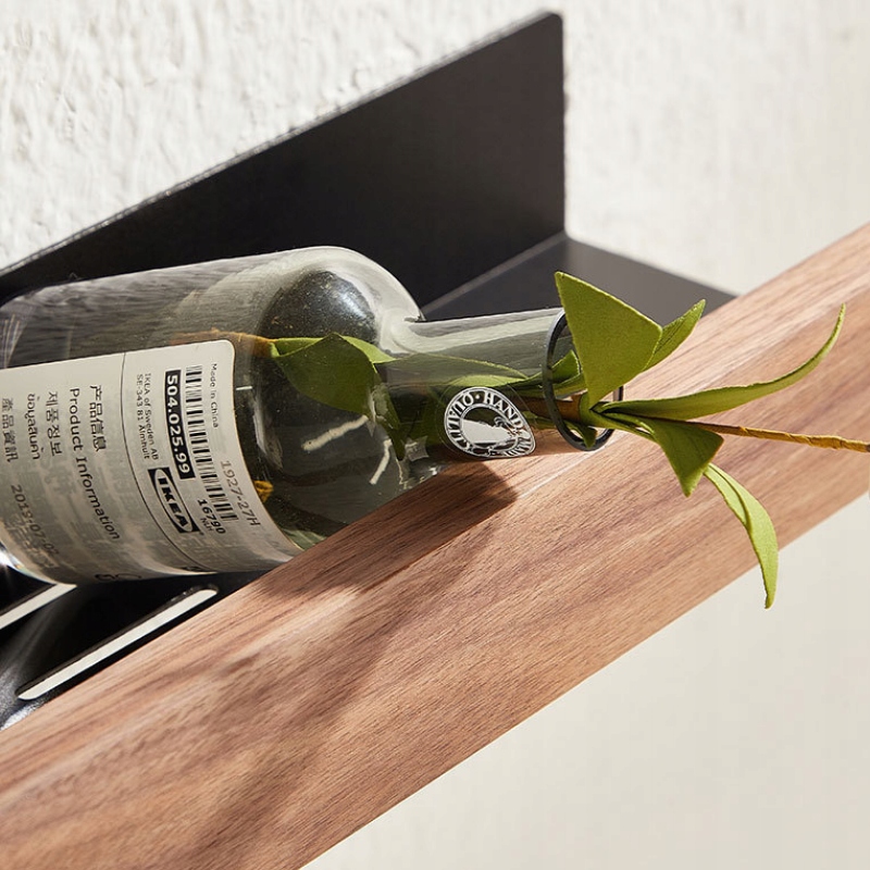 Półka wykonana z tworzywa sztucznego, metalu oraz drewna.