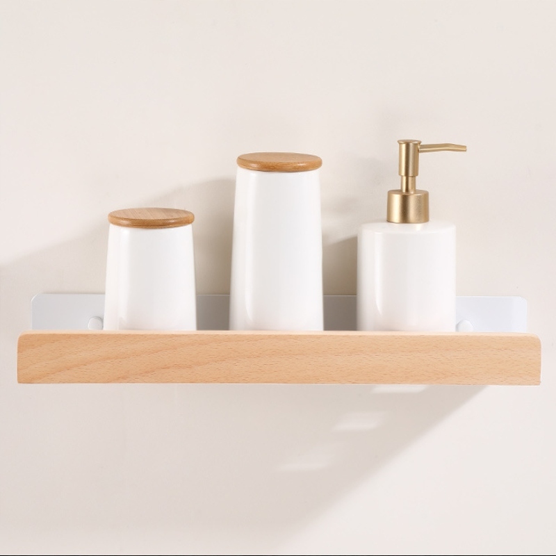 Półka łazienkowo-prysznicowa z drewnianym wykończeniem