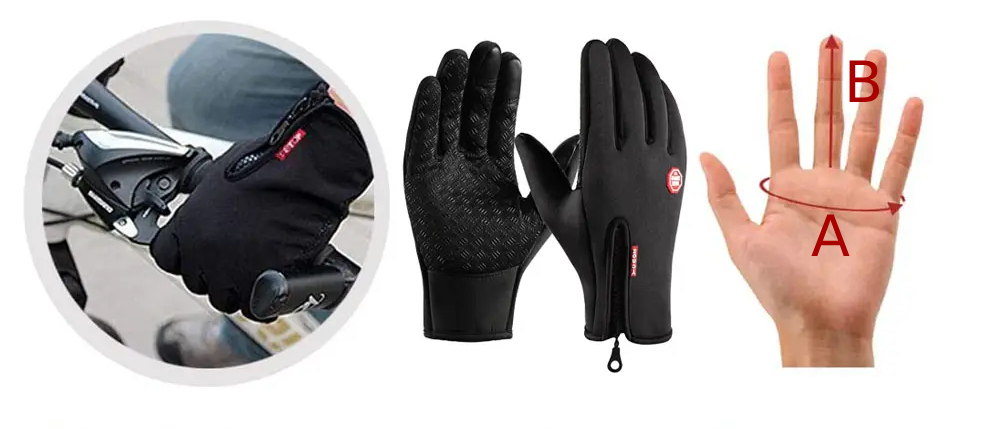 - Rozmiar: Uniwersalny Unisex S/L - długość palca (B) ok. 8-9cm, obwód (A) ok. 20-21 cm