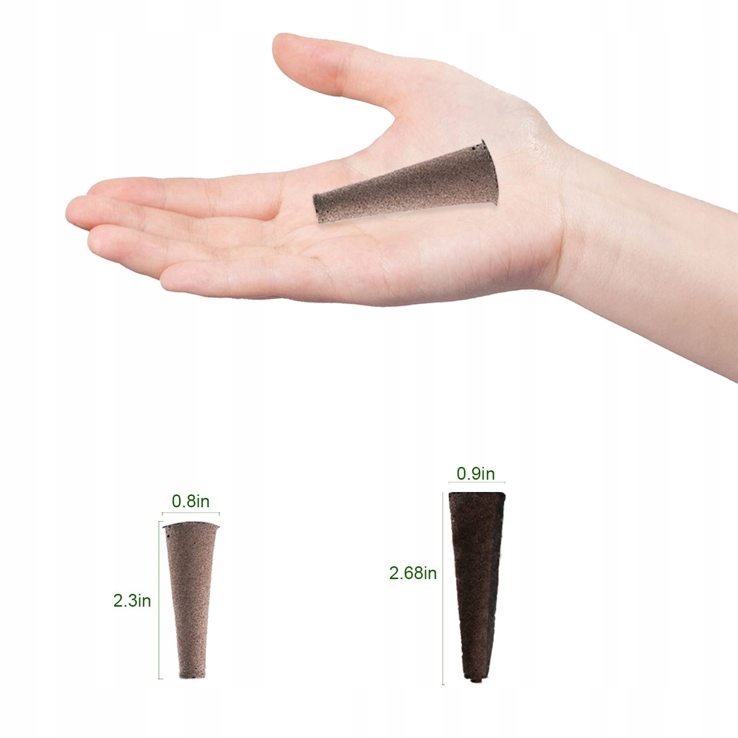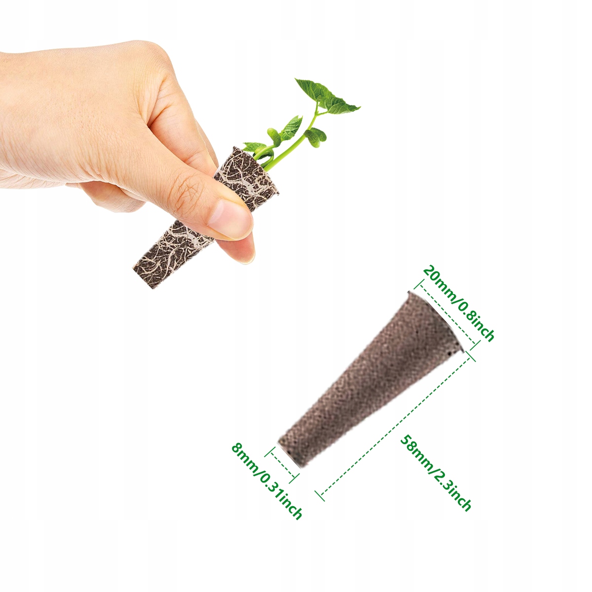 Wielkość każdej doniczki do sadzonek wynosi około 55x16mm (długość x górna średnica), z materiału gąbczastego, przyjaznego dla środowiska i bezpiecznego, wraz z szybszą absorpcją i retencją wody, nie zanieczyszczające, ulegające degradacji, możesz swobodnie z nich korzystać.