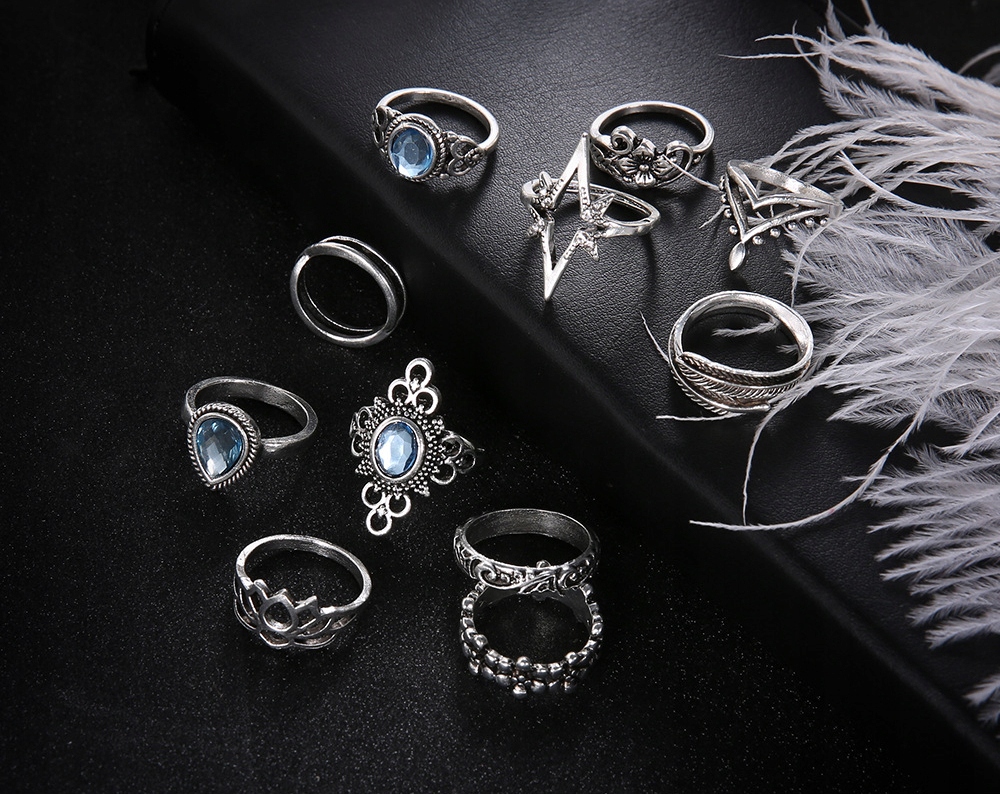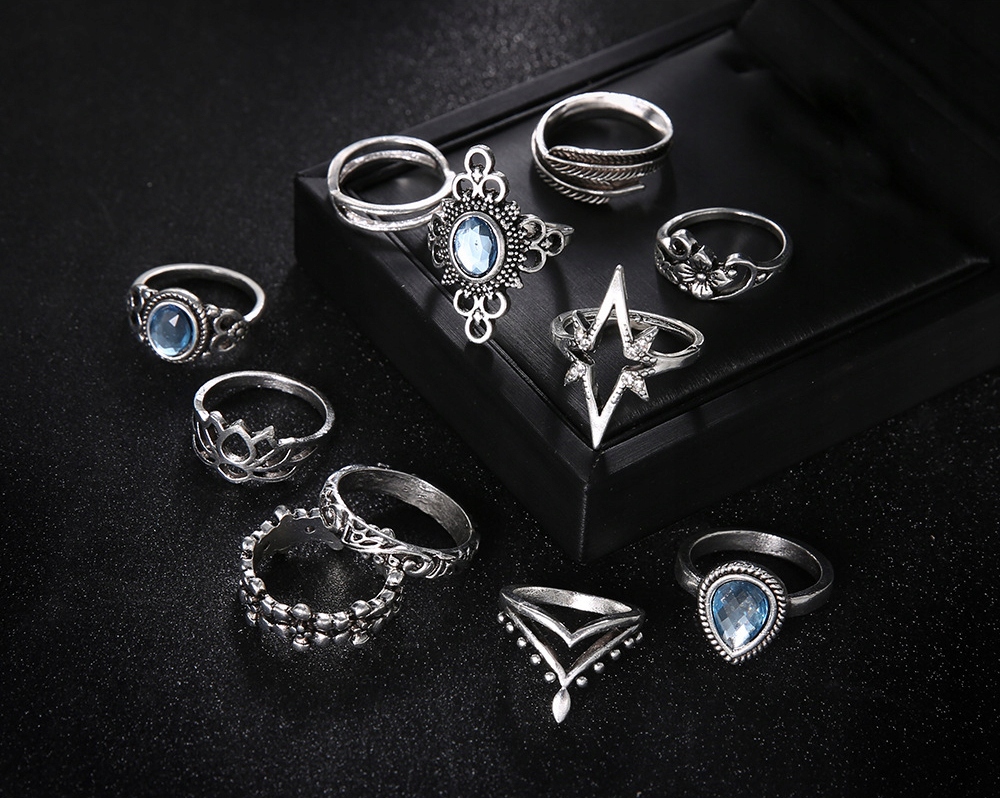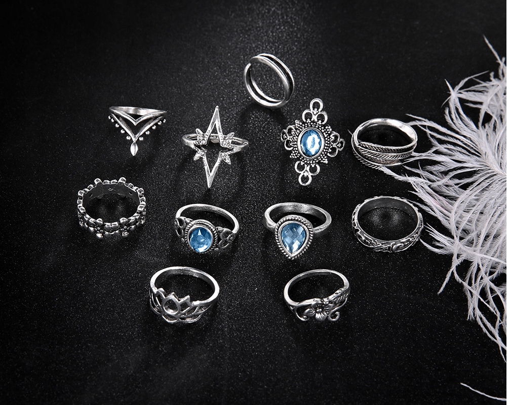 Srebrny zestaw pierścionków retro punk boho 85 - zdjęcie 1